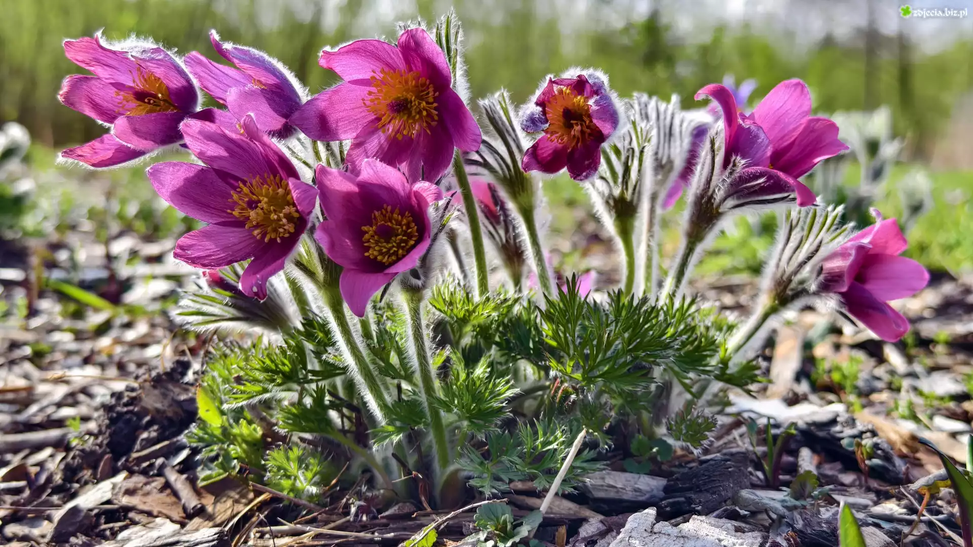 Zdjęcie Kwiaty, Fioletowe, Sasanki, Światło