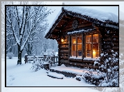 Zdjęcie Dom, Drewniany, Okno, Światło, Zima, Grafika AI