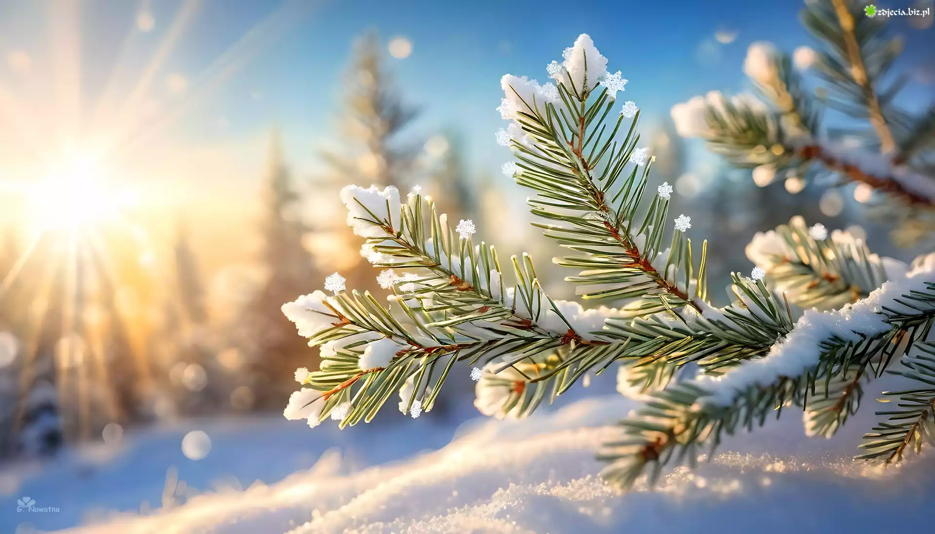 Zdjęcie Gałązki, Świerk, Śnieg, Zima, Grafika