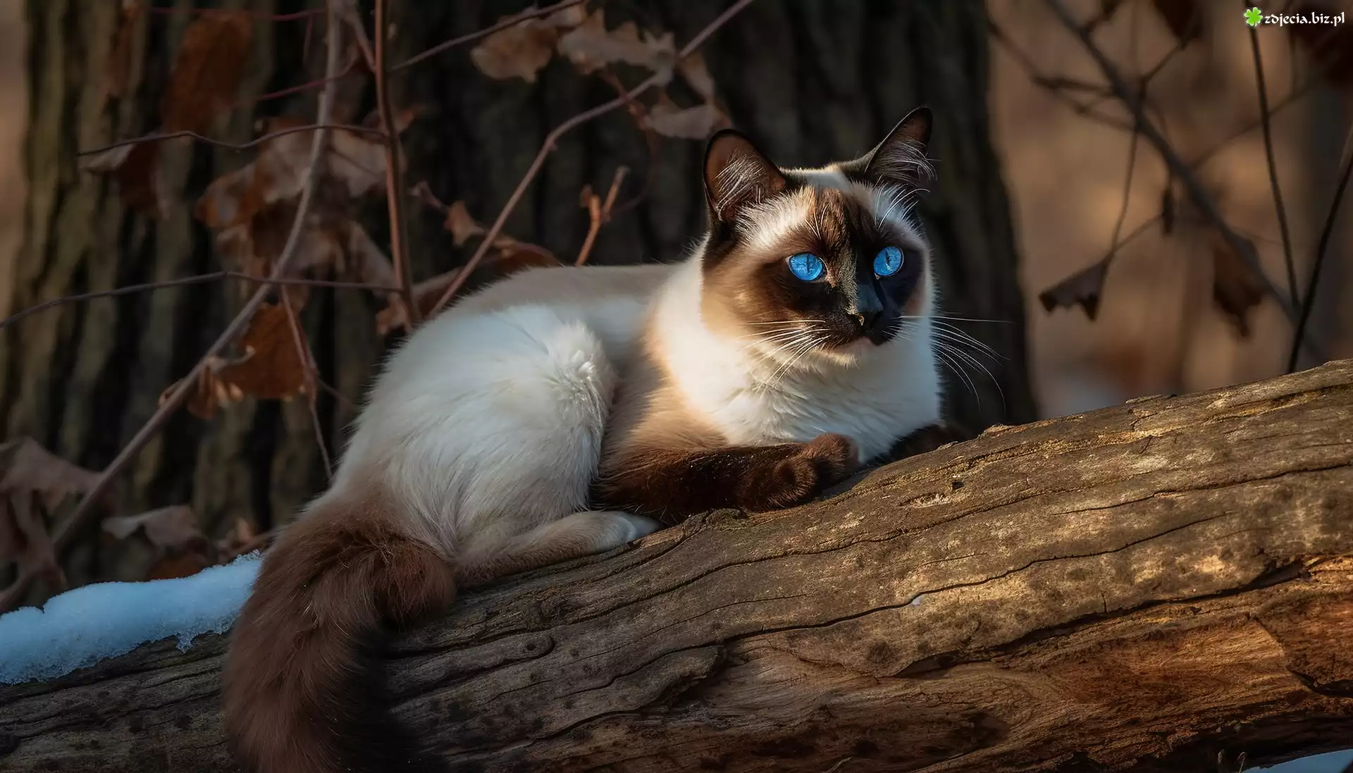Zdjęcie, Kot syjamski, Niebieskie, Oczy, Konar