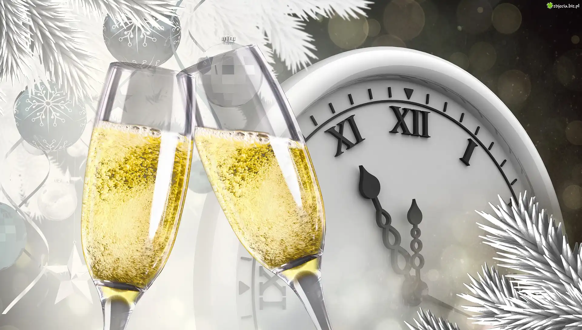 Zdjęcie Sylwester, Szampan, Kieliszki, Zegar