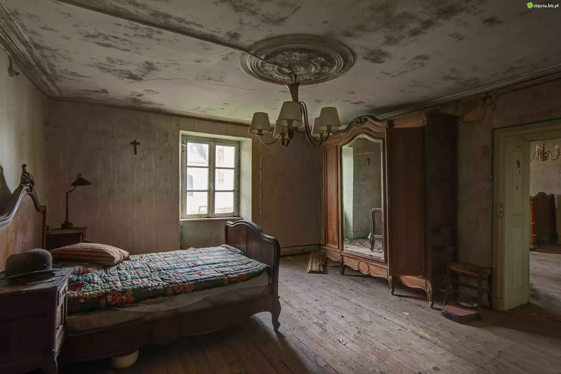 Zdjęcie, Zaniedbana, Sypialnia, Szafa