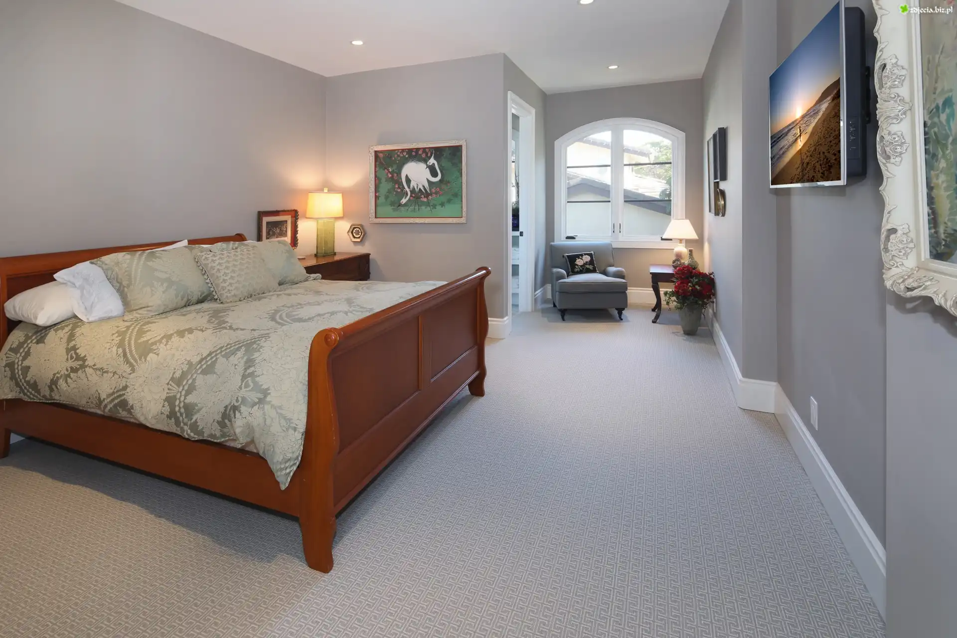 Zdjęcie Sypialnia, Obrazy, Telewizor, Lampy