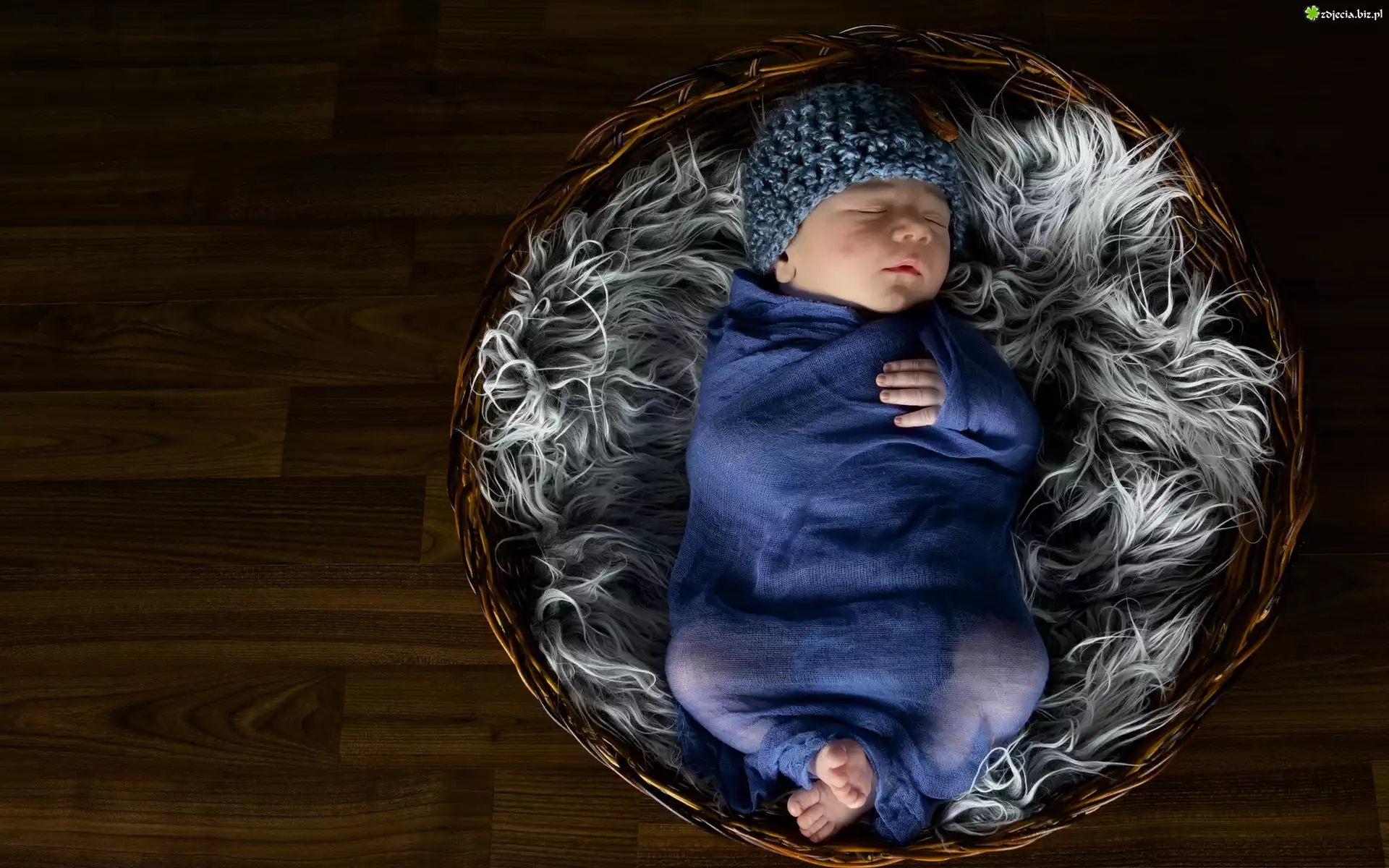 Zdjęcie Śpiące, Niemowle, Szal, Kosz