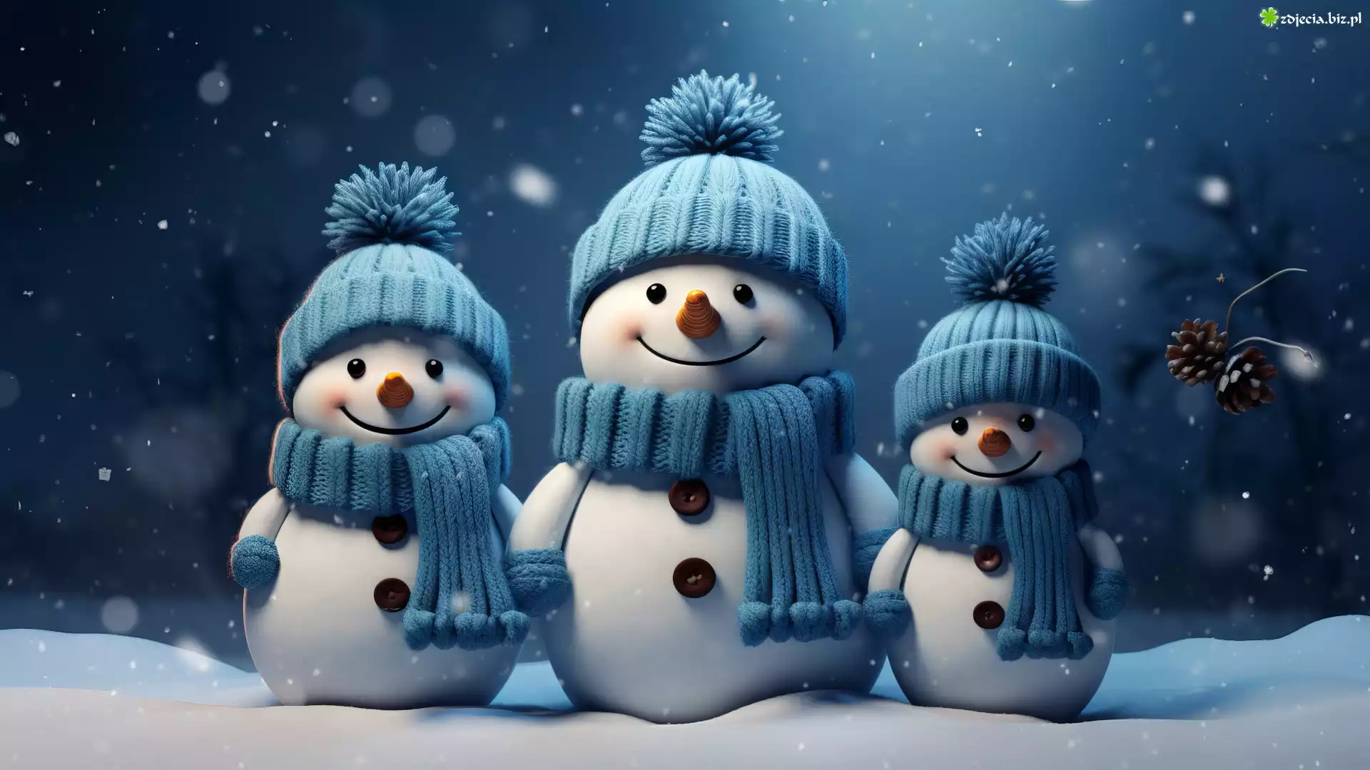 Zdjęcie Zima, Trzy, Bałwany, Szaliki, Czapki, Śnieg