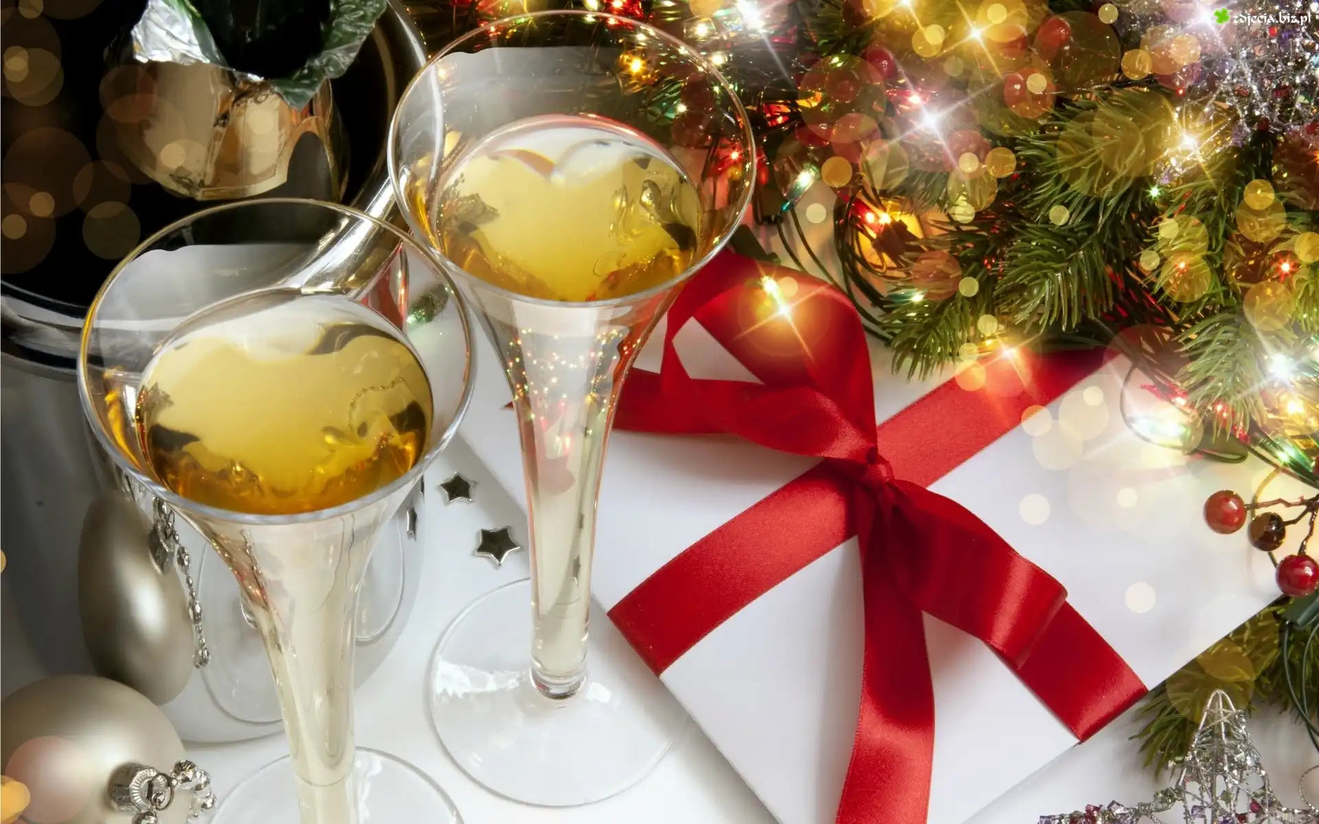 Zdjęcie Szampan, Choinka, Ozdoby, Sylwester