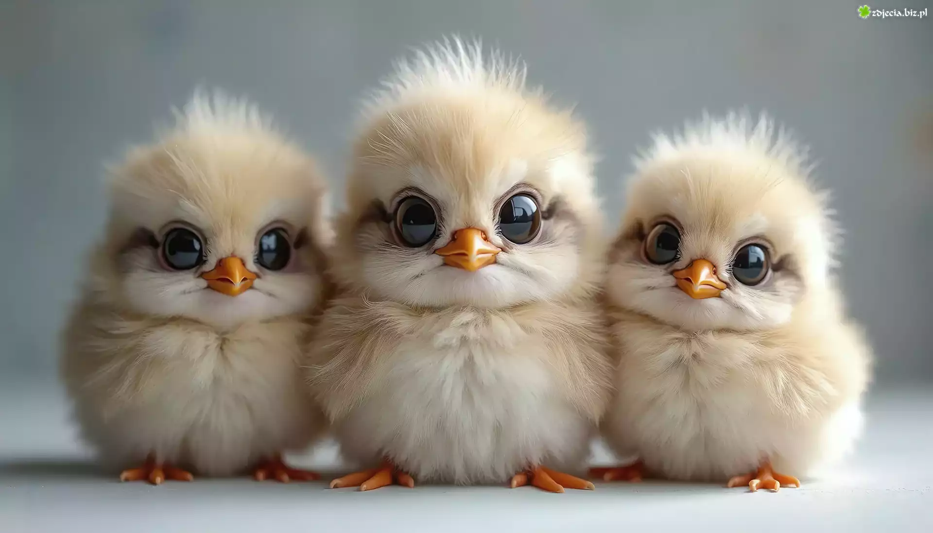 Zdjęcie Trzy, Ptaki, Pisklęta, Szare, Tło, Grafika