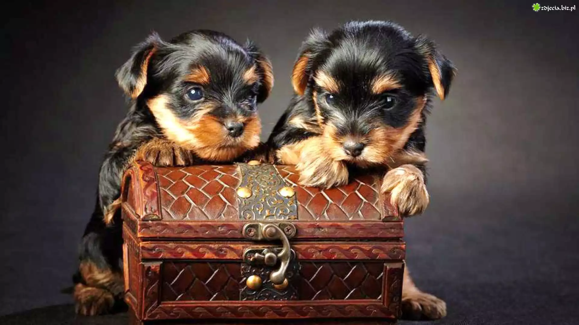 Zdjęcie Dwa, Szczeniaczki, Kufer