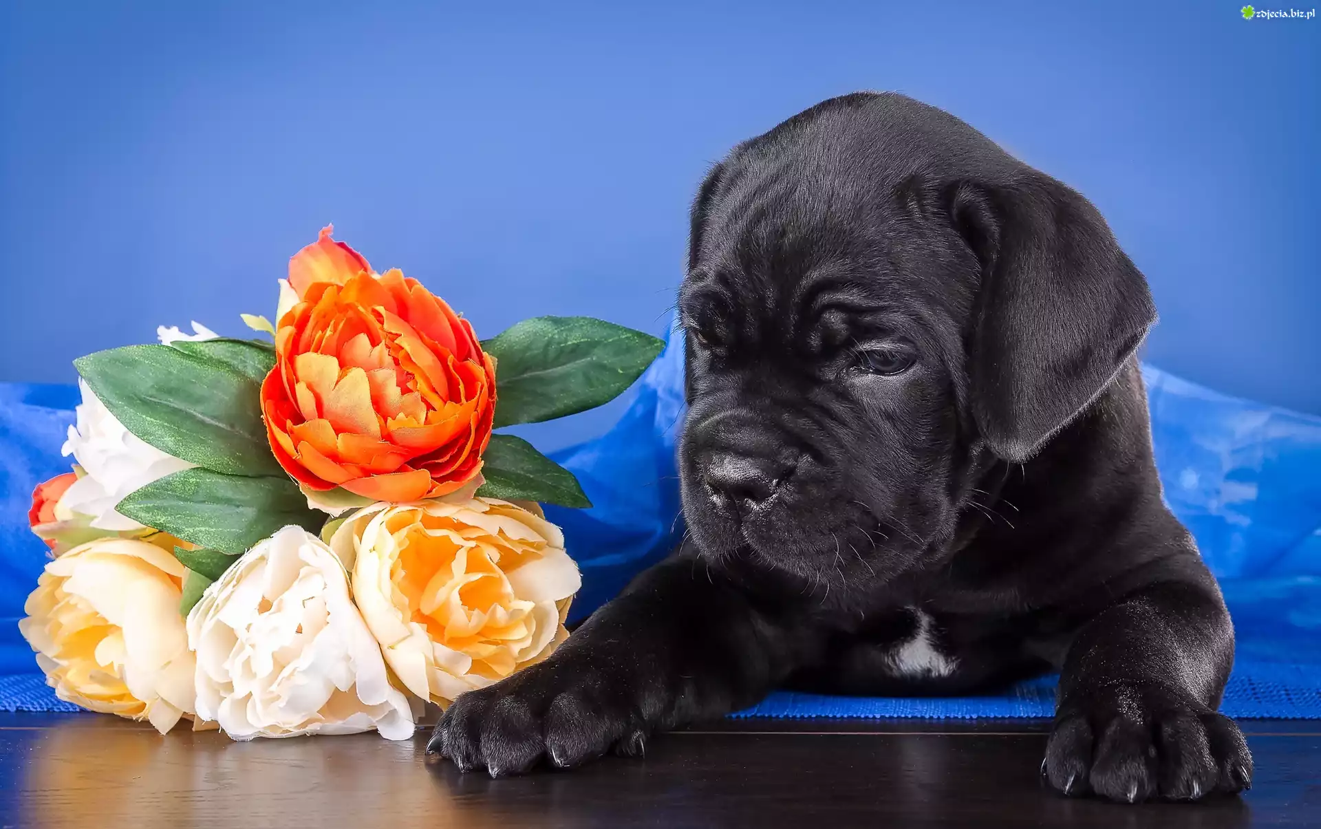 Zdjęcie Szczeniak, Cane Corso, Kwiaty