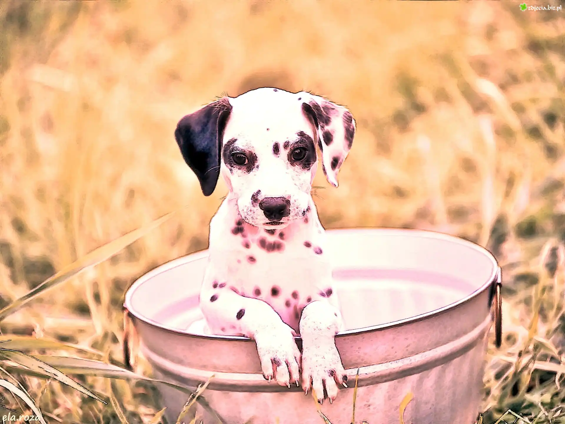 Zdjęcie, Dalmatyńczyk, Szczeniak, Wiaderko