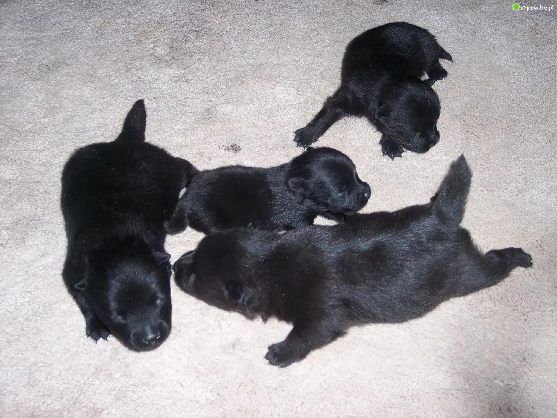 Zdjęcie cztery, szczeniaki, Schipperke