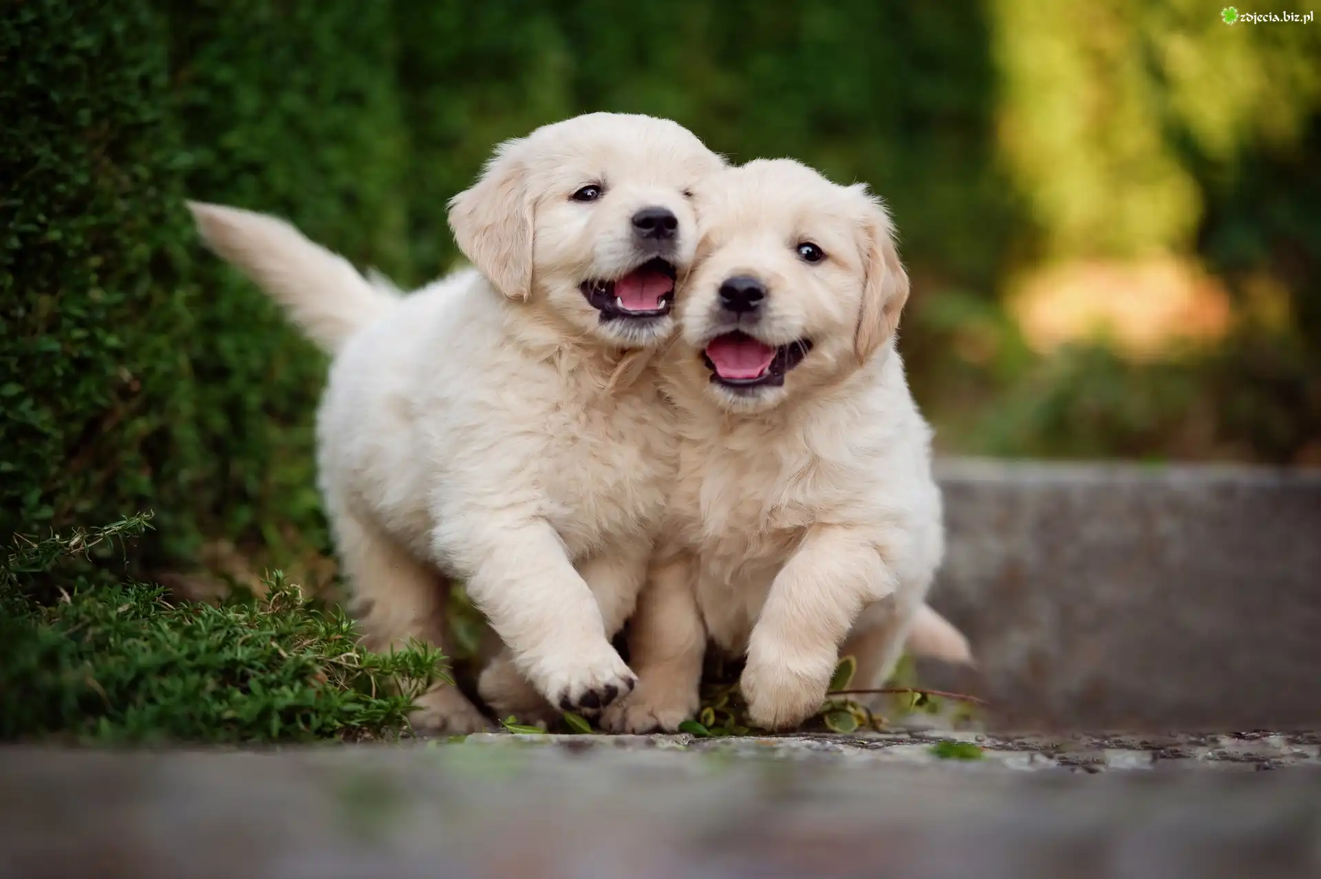 Zdjęcie Szczeniaki, Dwa, Psy, Golden Retrievery