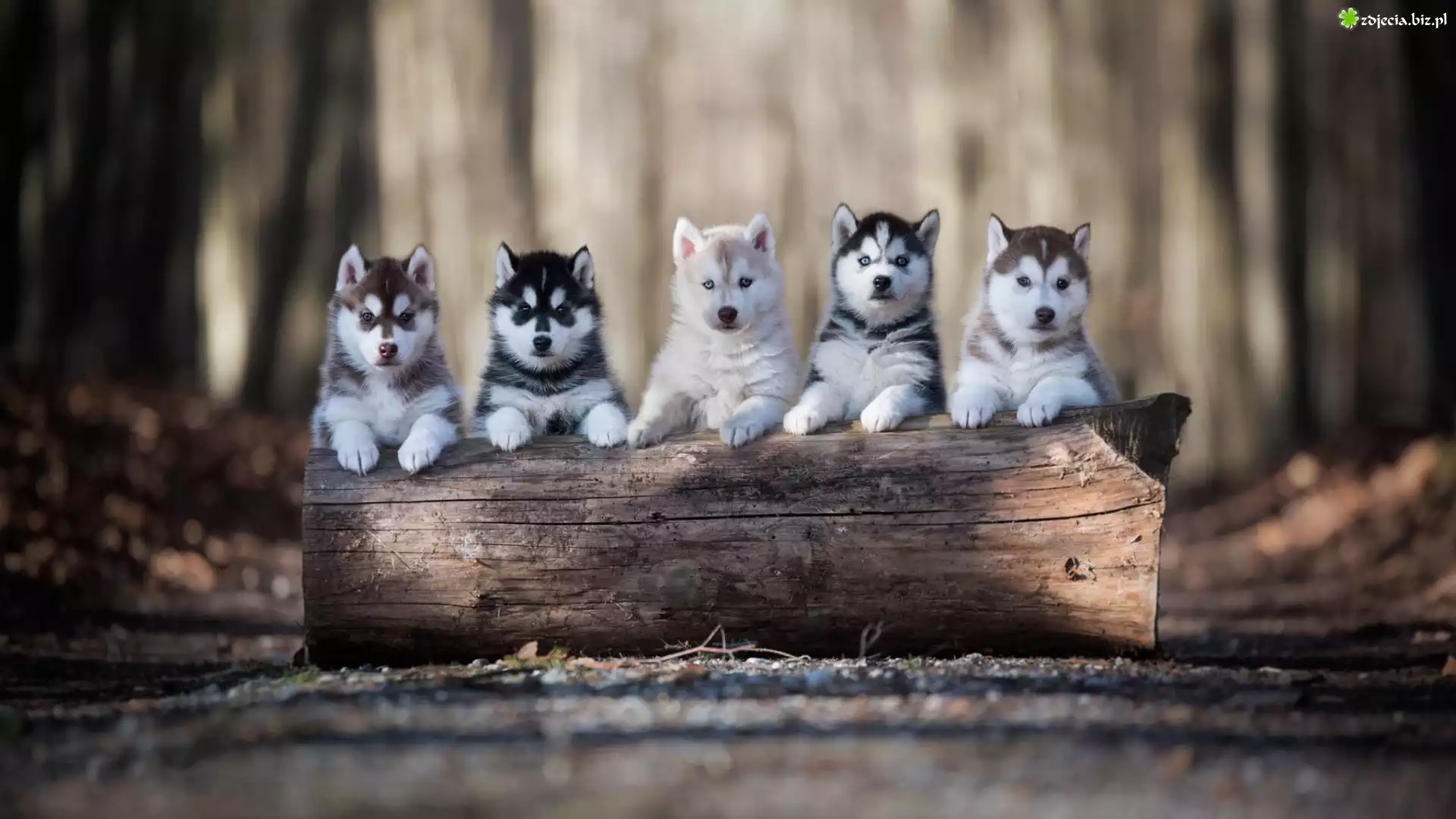 Zdjęcie Szczeniaki, Siberian husky, Kłoda
