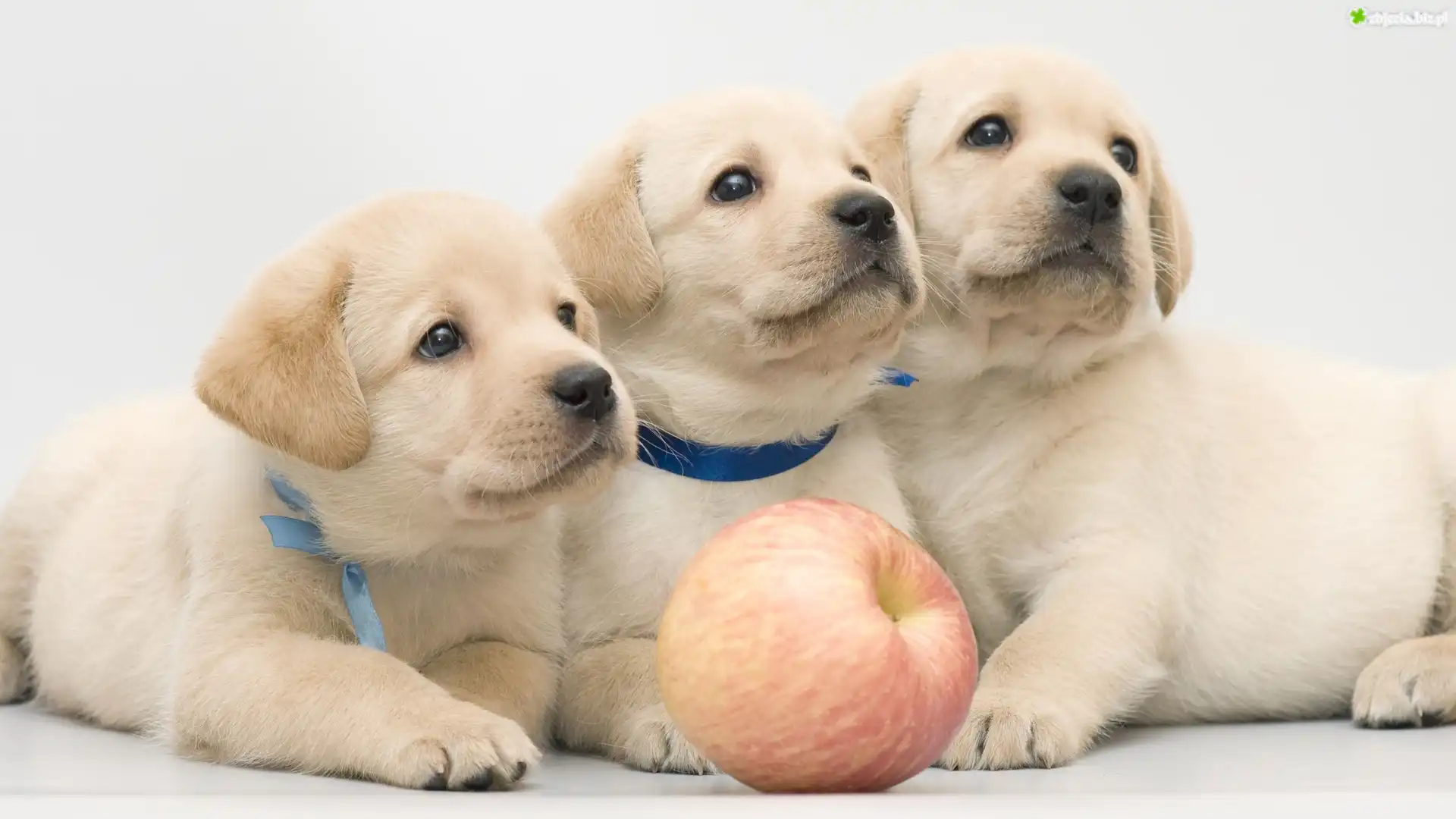 Zdjęcie Szczeniaki, Labrador retriever, Jabłko