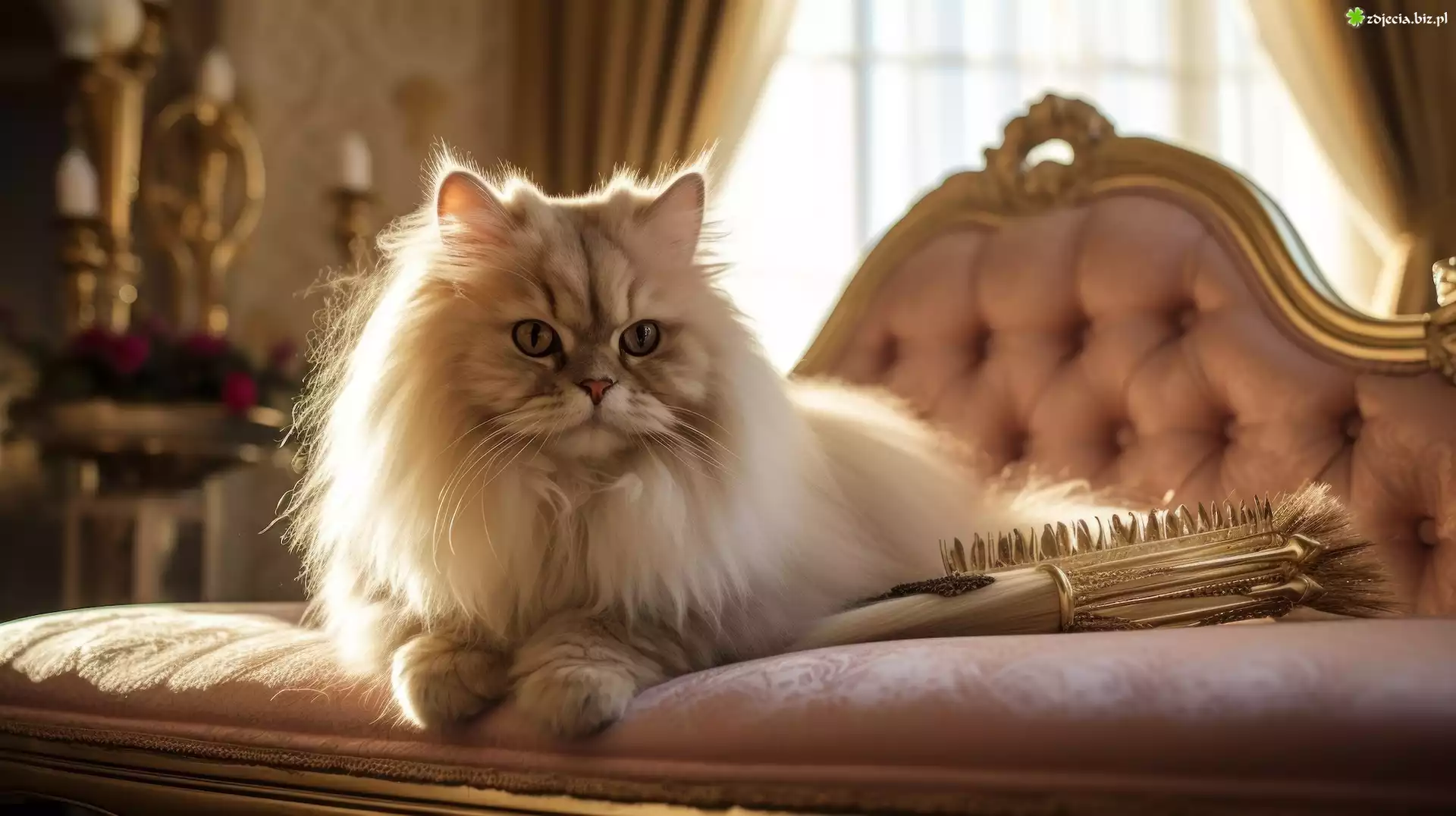 Zdjęcie, Kot perski, Kanapa, Szczotka