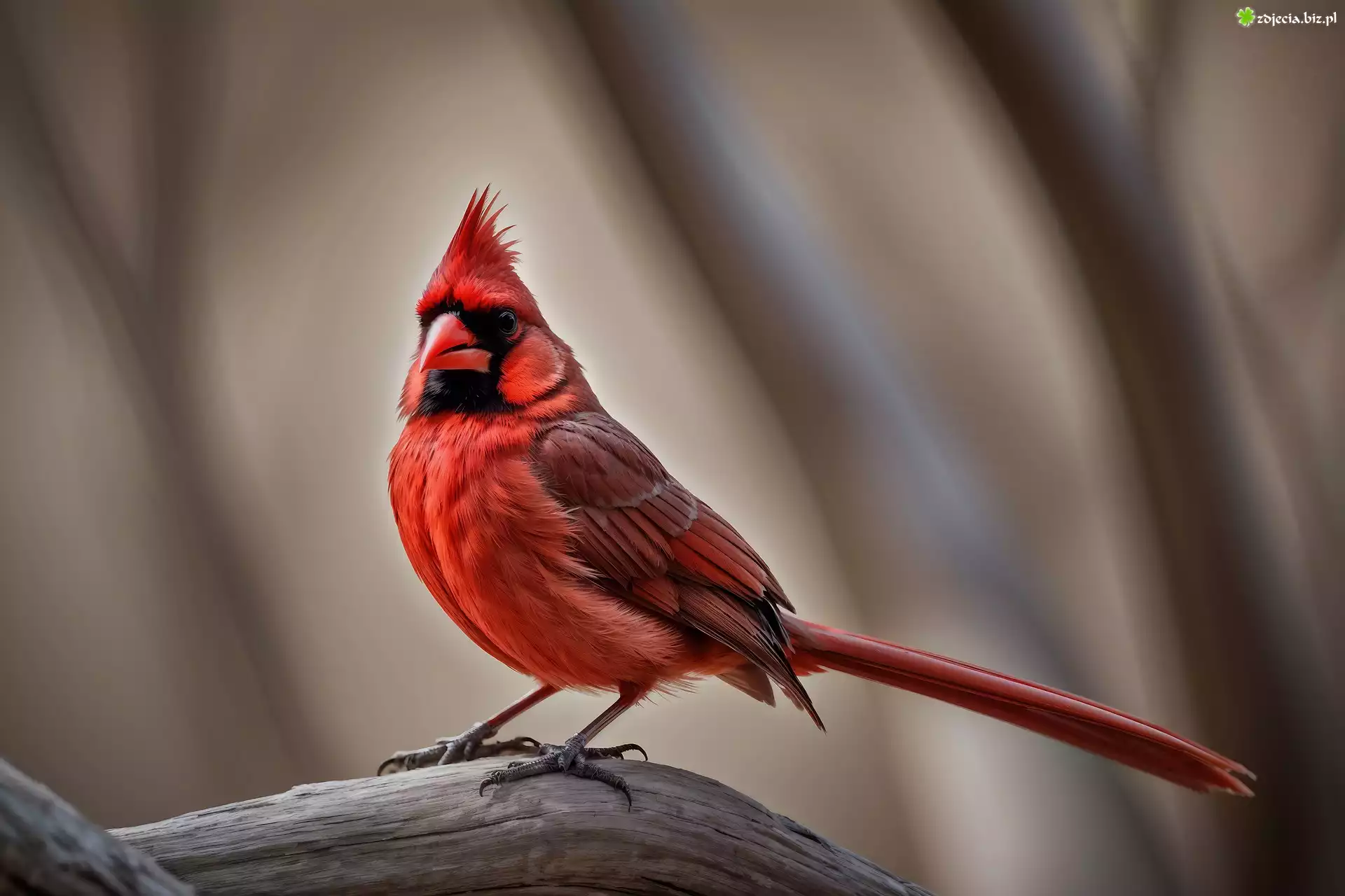 Zdjęcie Ptak, Czerwony, Kardynał szkarłatny, Konar, Rozmyte, Tło