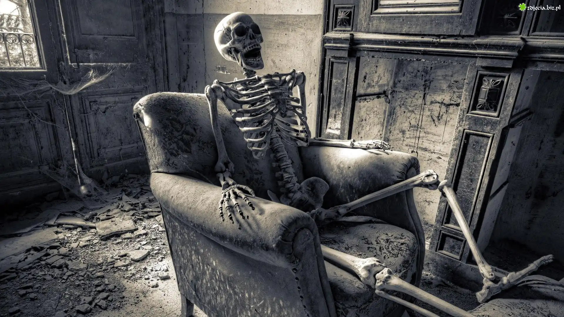 Zdjęcie Szkielet, Fotel, Zaniedbany, Pokój