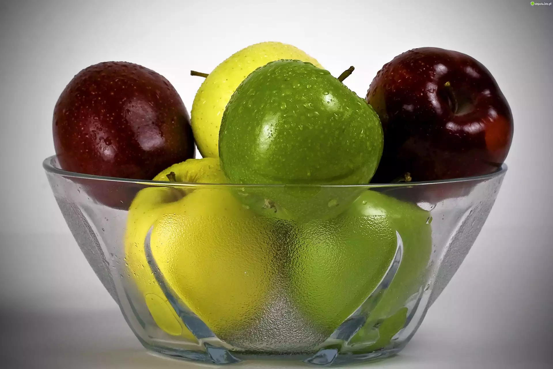 Zdjęcie Szklana, Miska, Kolorowe, Jabłka