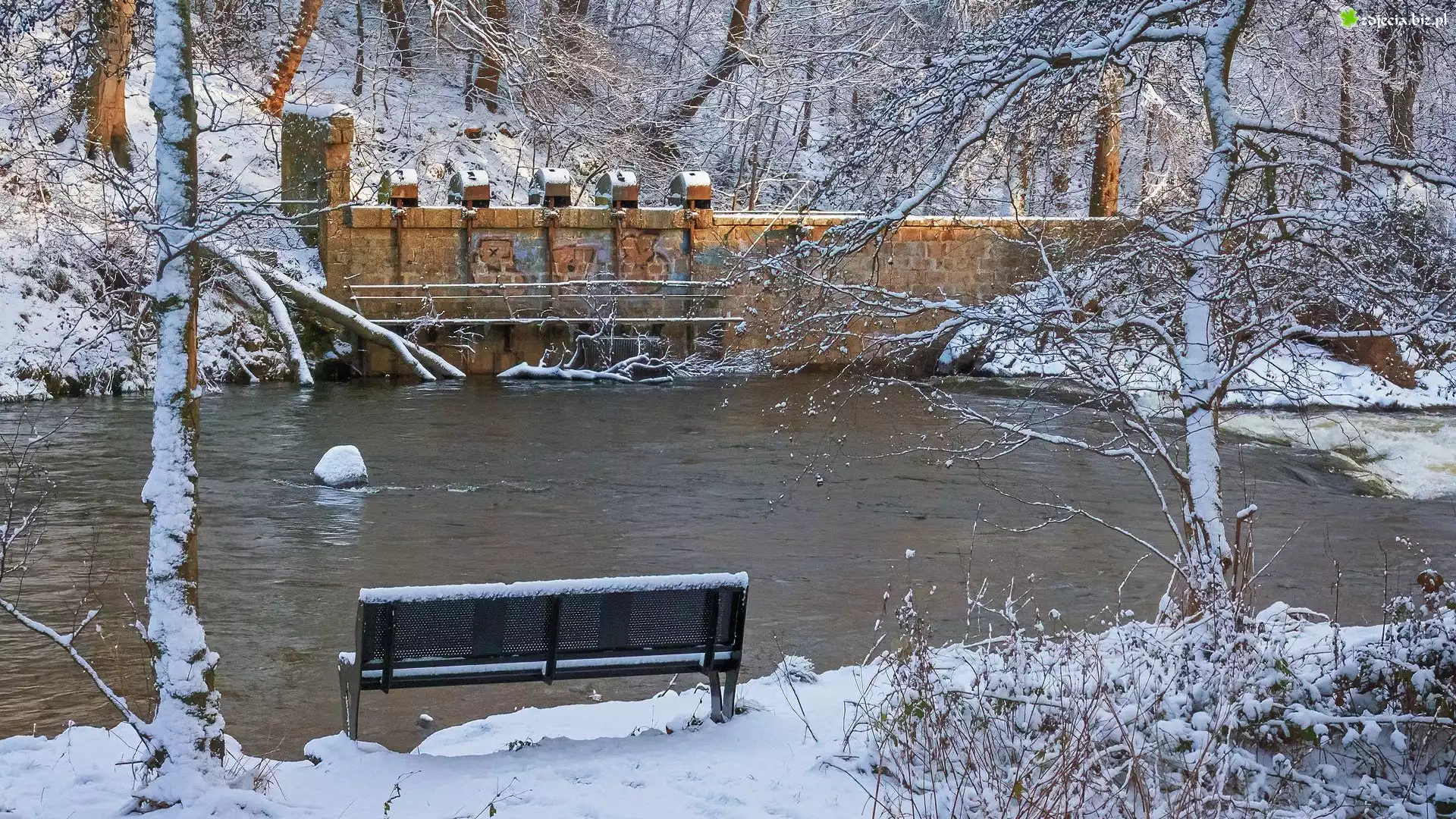 Zdjęcie, Zima, Rzeka, Don River, Mur, Drzewa, Aberdeen, Szkocja