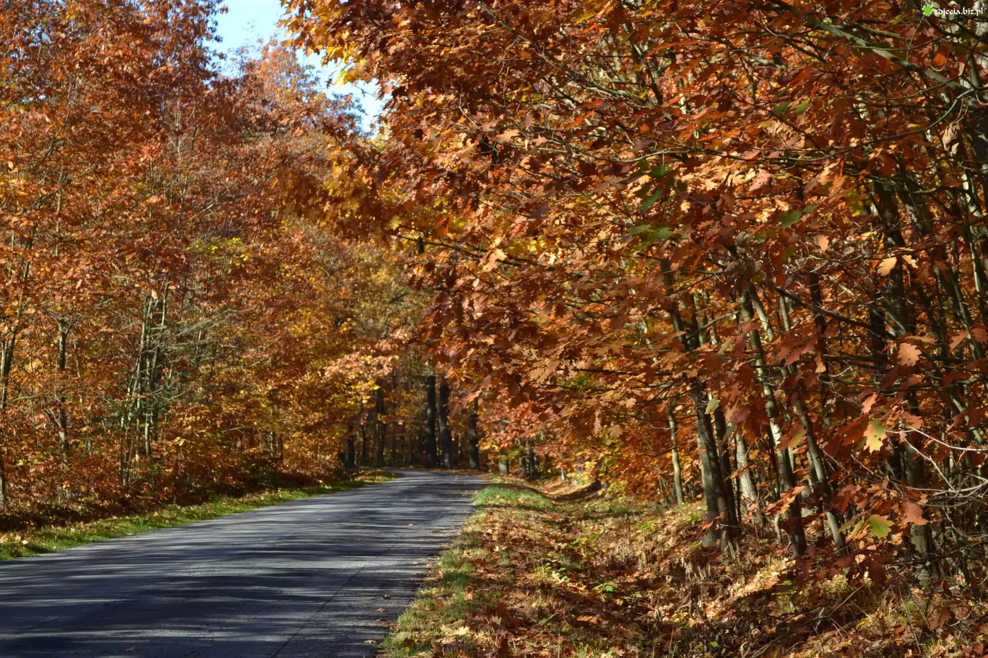 Zdjęcie Szosa, W, Jesiennym, Dębowym, Lesie