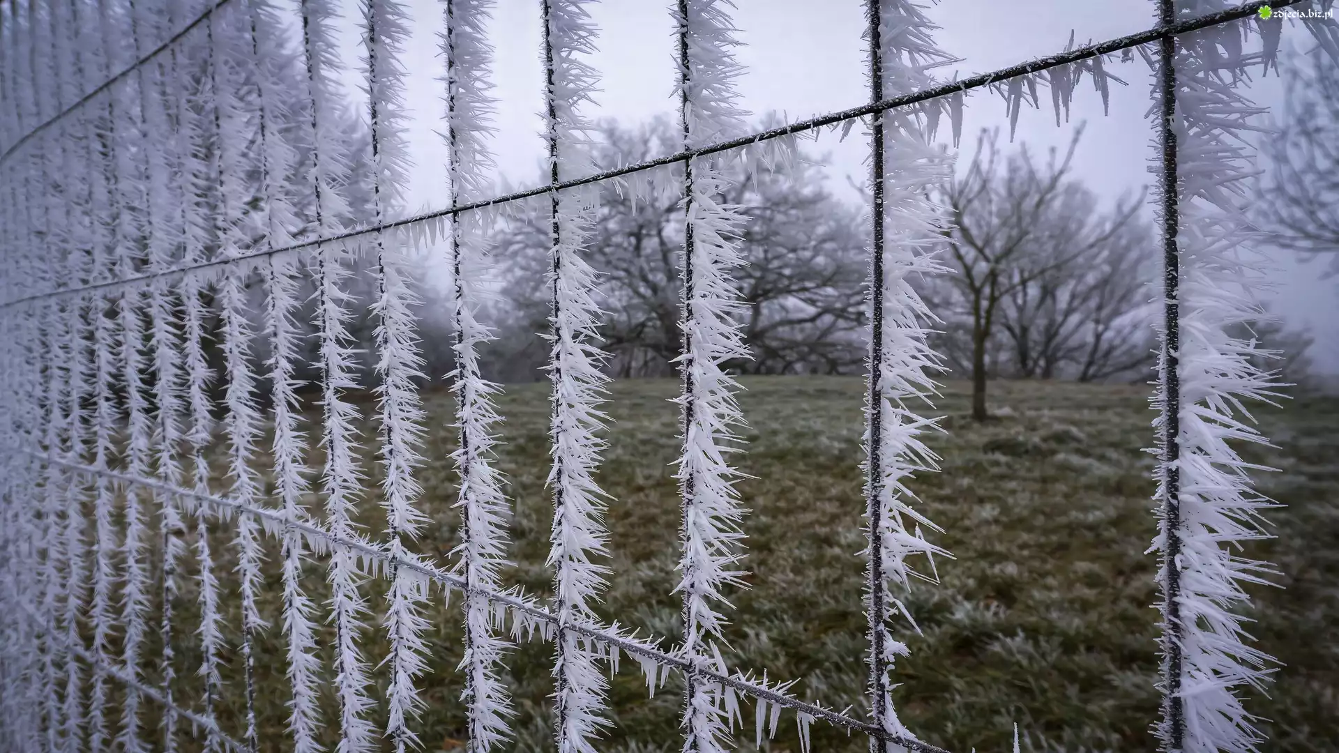 Zdjęcie Druciany, Oszroniony, Płot, Szron, Lód, Zima, Pole