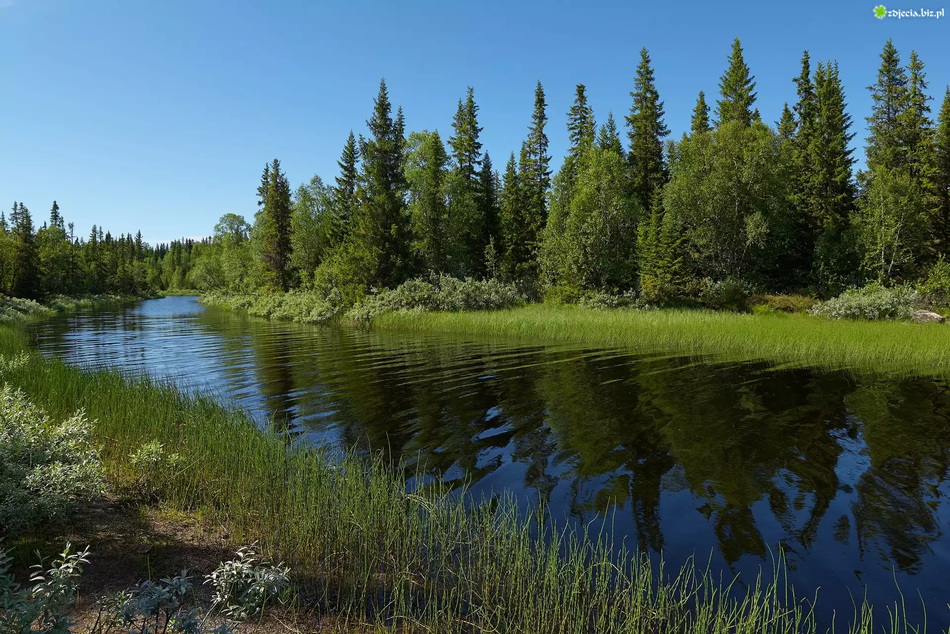 Zdjęcie Rzeka, Las, Drzewa, Szuwary