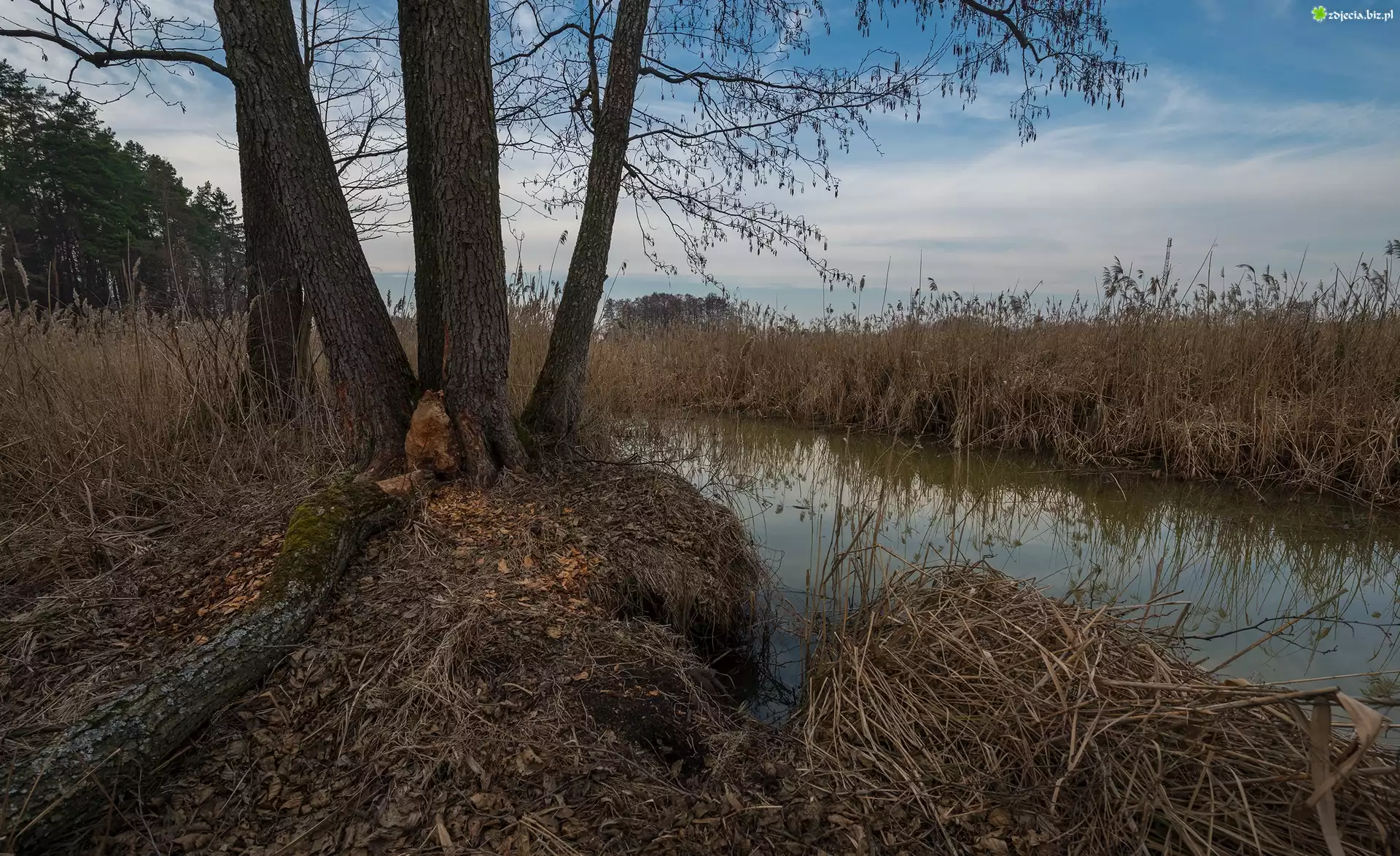Zdjęcie Rzeka, Szuwary, Drzewa