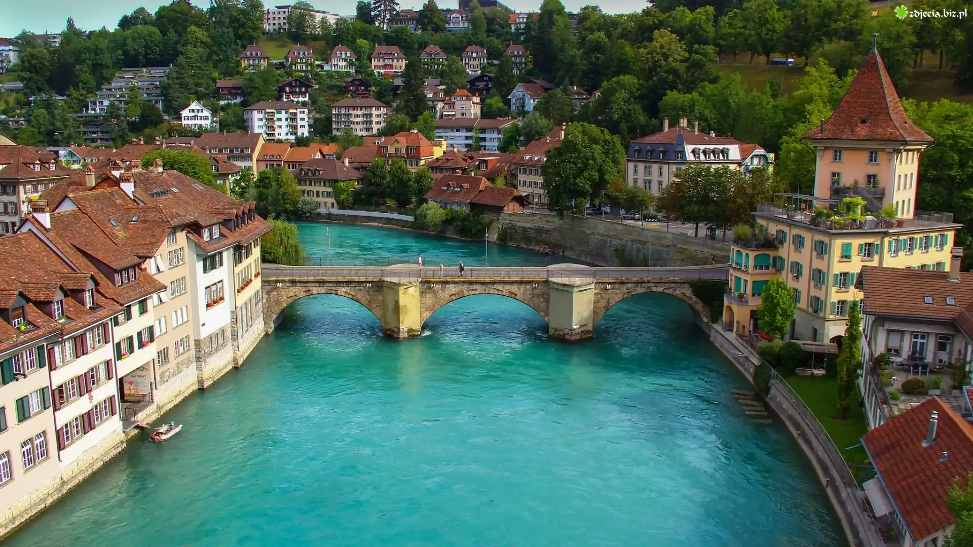 Zdjęcie, Szwajcaria, Miasto, Rzeka, Most