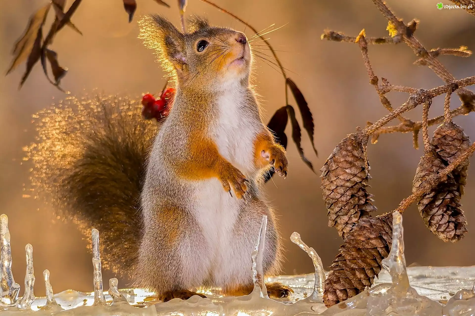Zdjęcie Wiewiórka, Szyszki, Sople