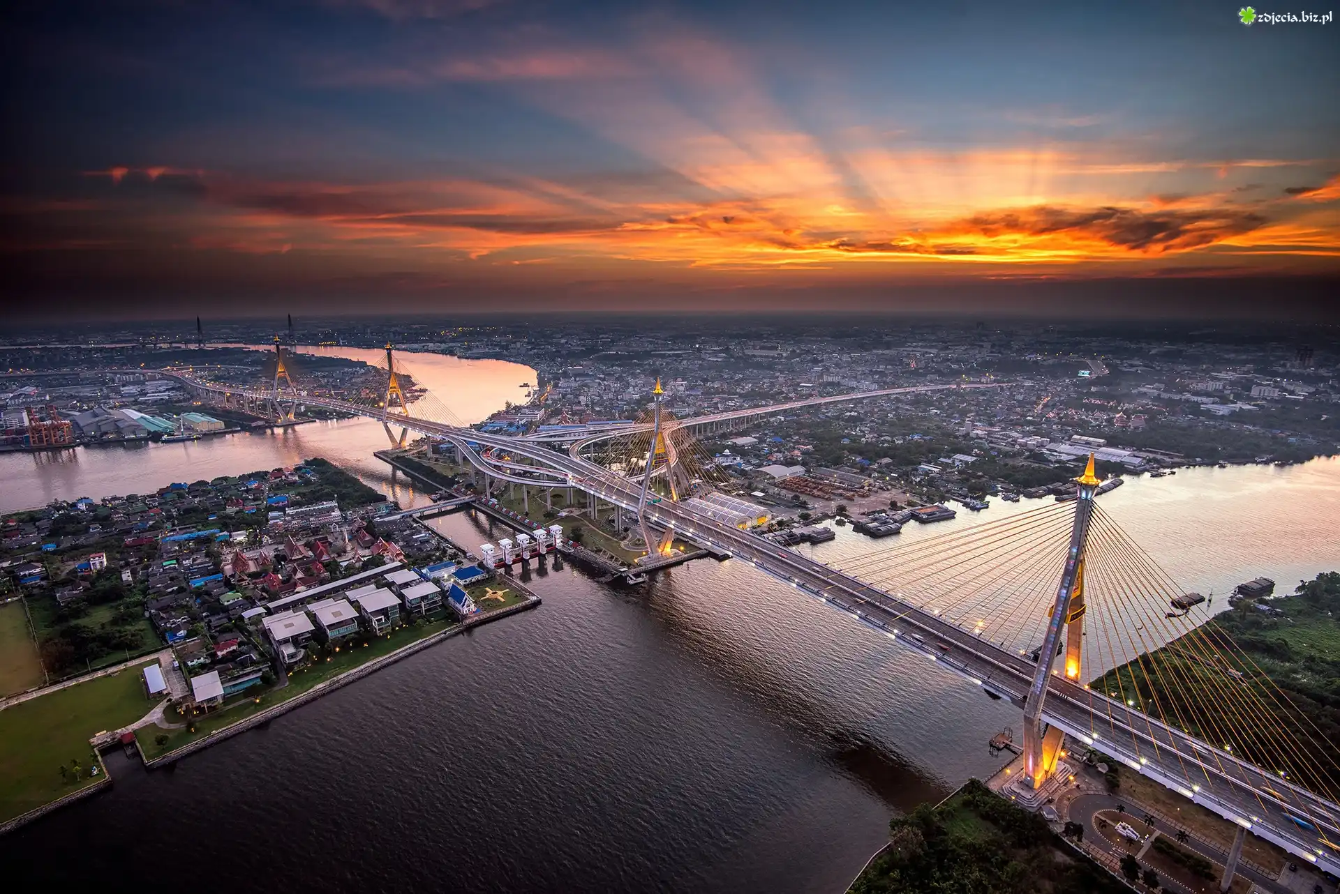 Zdjęcie, Tajlandia, Bangkok, Most, Rzeka, Noc, Azja
