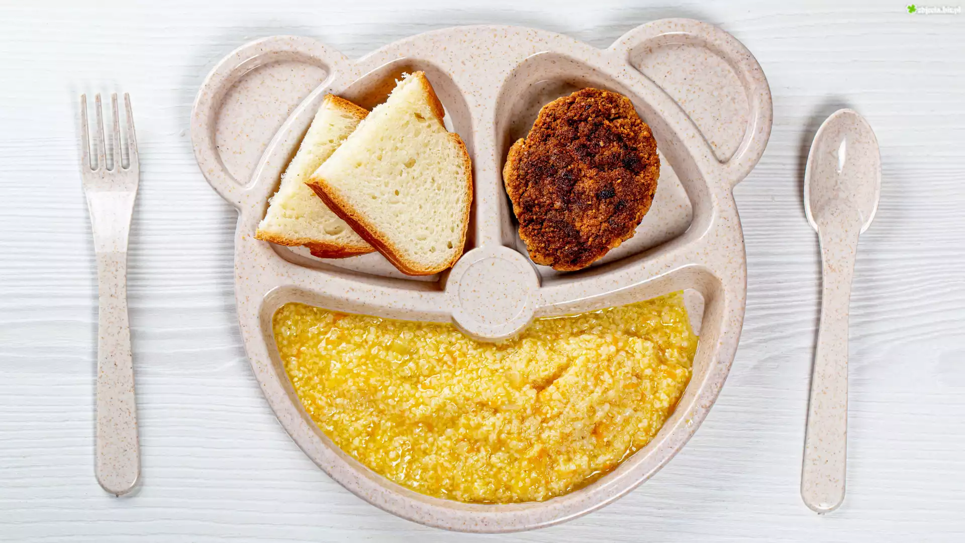 Zdjęcie Talerz, Kasza, Kotlet, Chleb, Jedzenie