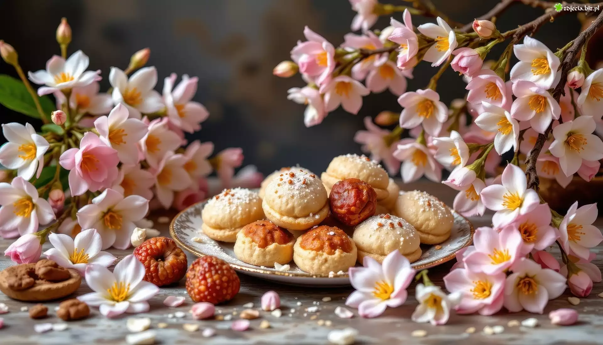 Zdjęcie, Ciasteczka, Talerz, Różowe, Drobne, Kwiaty