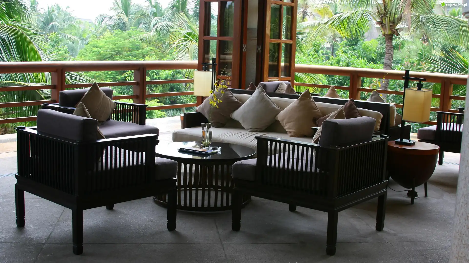 Zdjęcie, Taras, Relaks, Ogród, Palmy