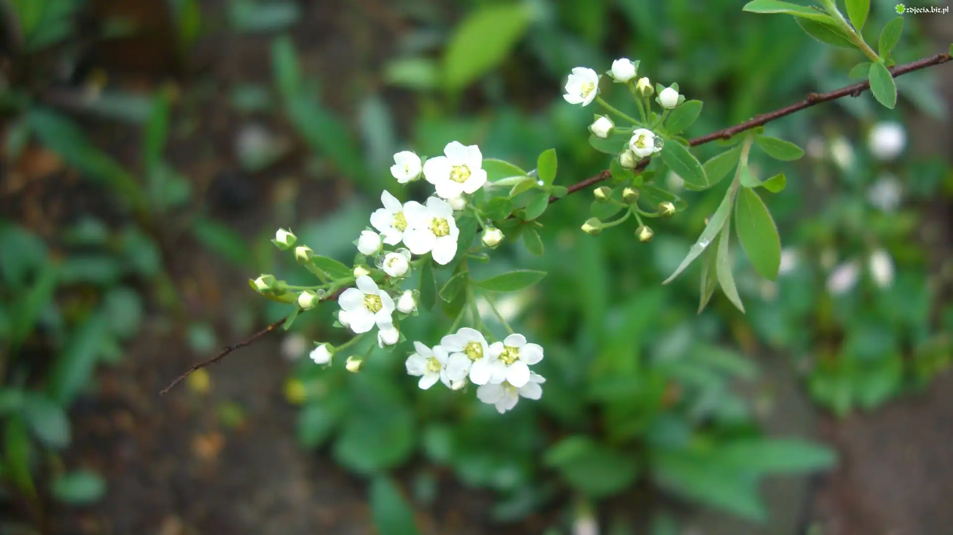 Zdjęcie Tawuła, Krzew, Białe, Kwiatki, Listki, Gałązka