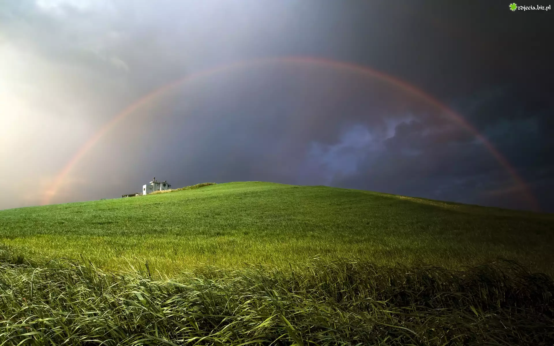 Zdjęcie Tęcza, Łąka, Dom, Chmury, Lato