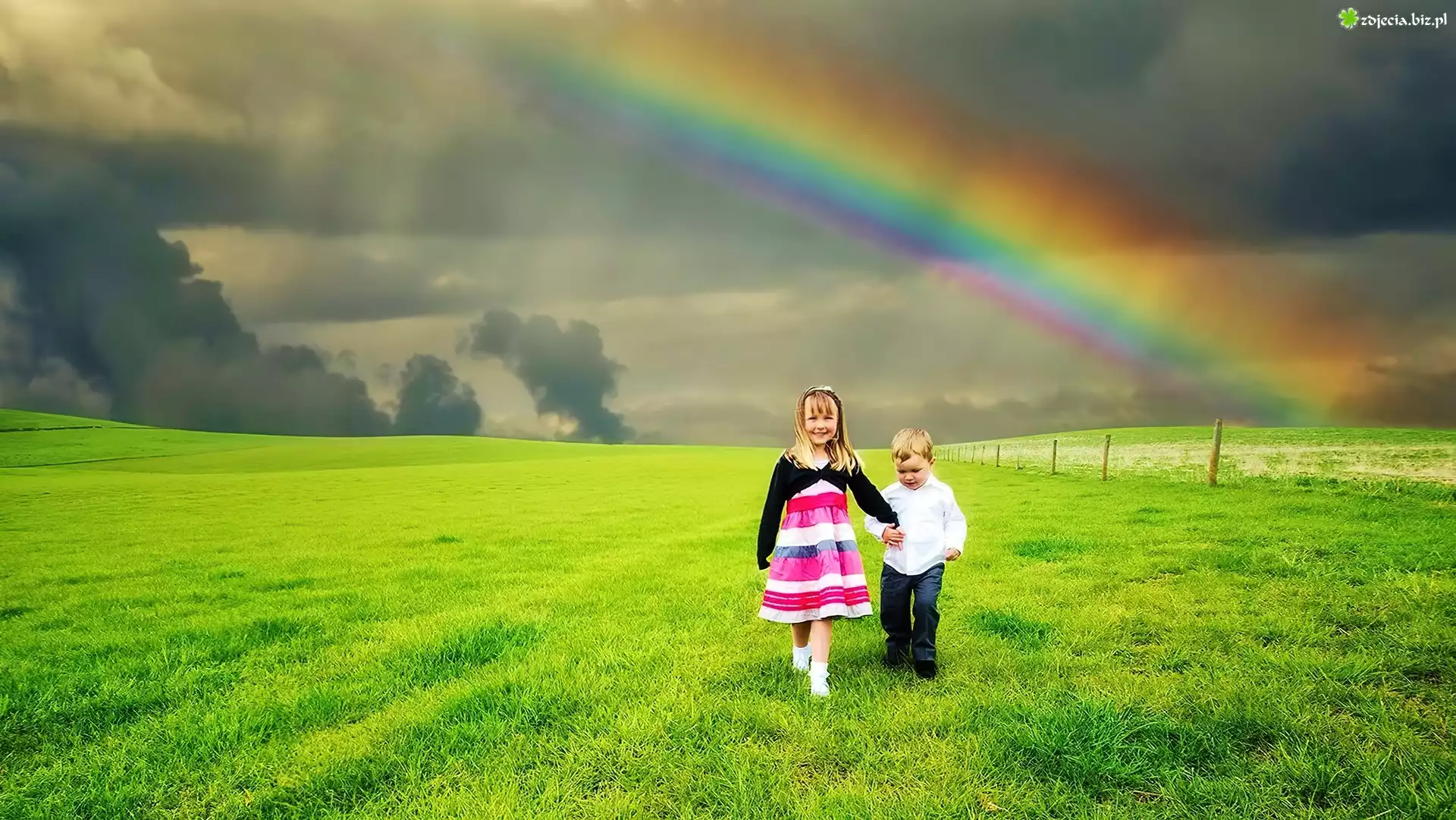 Zdjęcie, Dzieci, Tęcza, Trawa