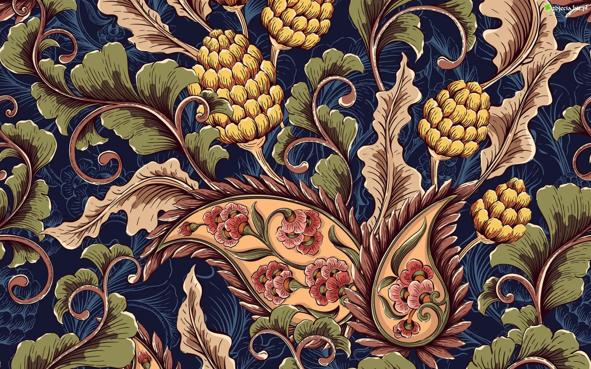Zdjęcie Tło, Wzór, Liście, Kwiaty
