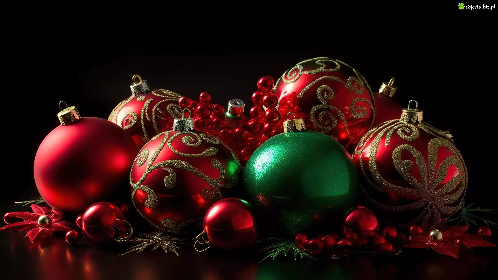 Zdjęcie Święta, Boże Narodzenie, Kolorowe, Ozdobne, Bombki, Czarne tło