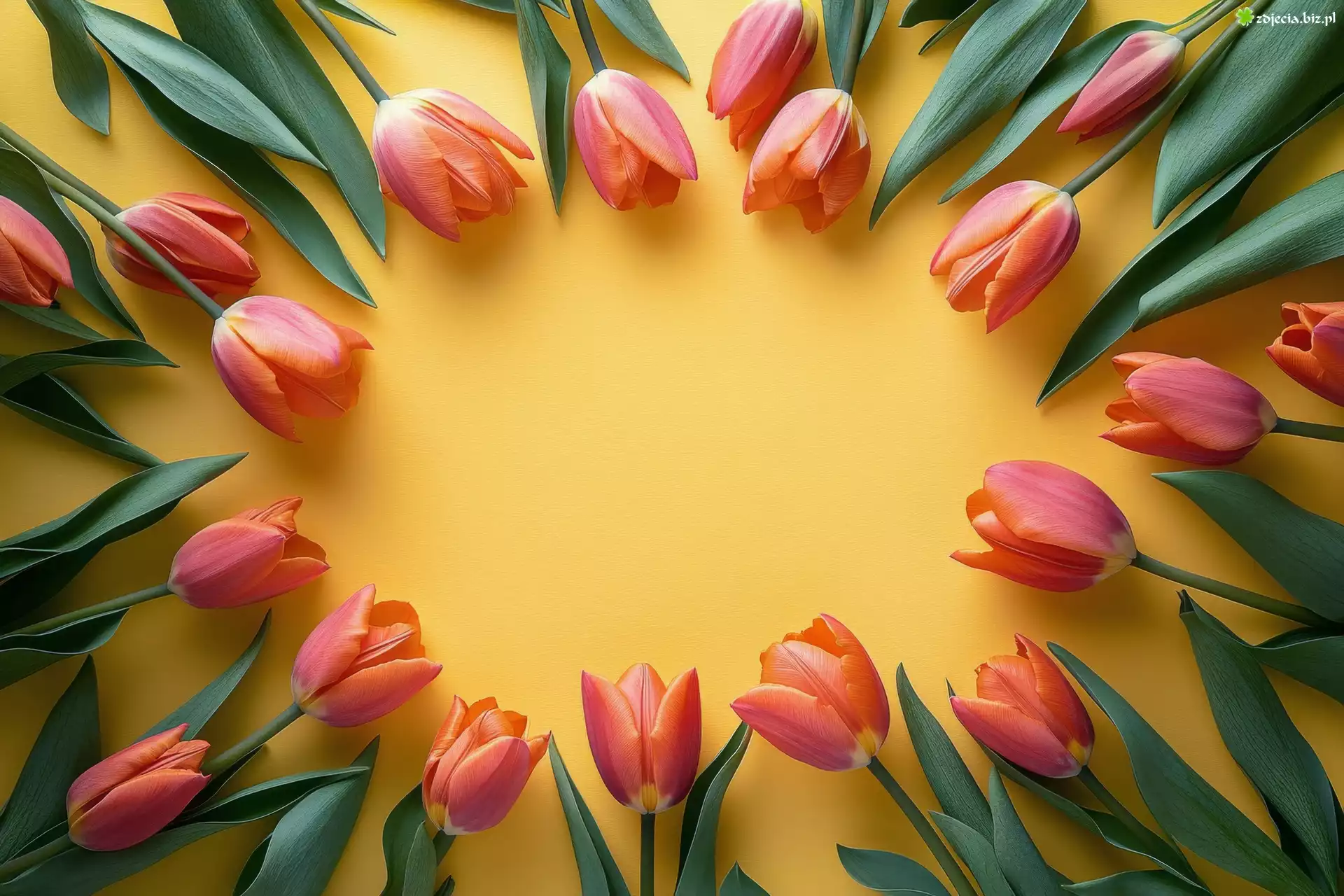 Zdjęcie Różowe, Tulipany, Żółte, Tło