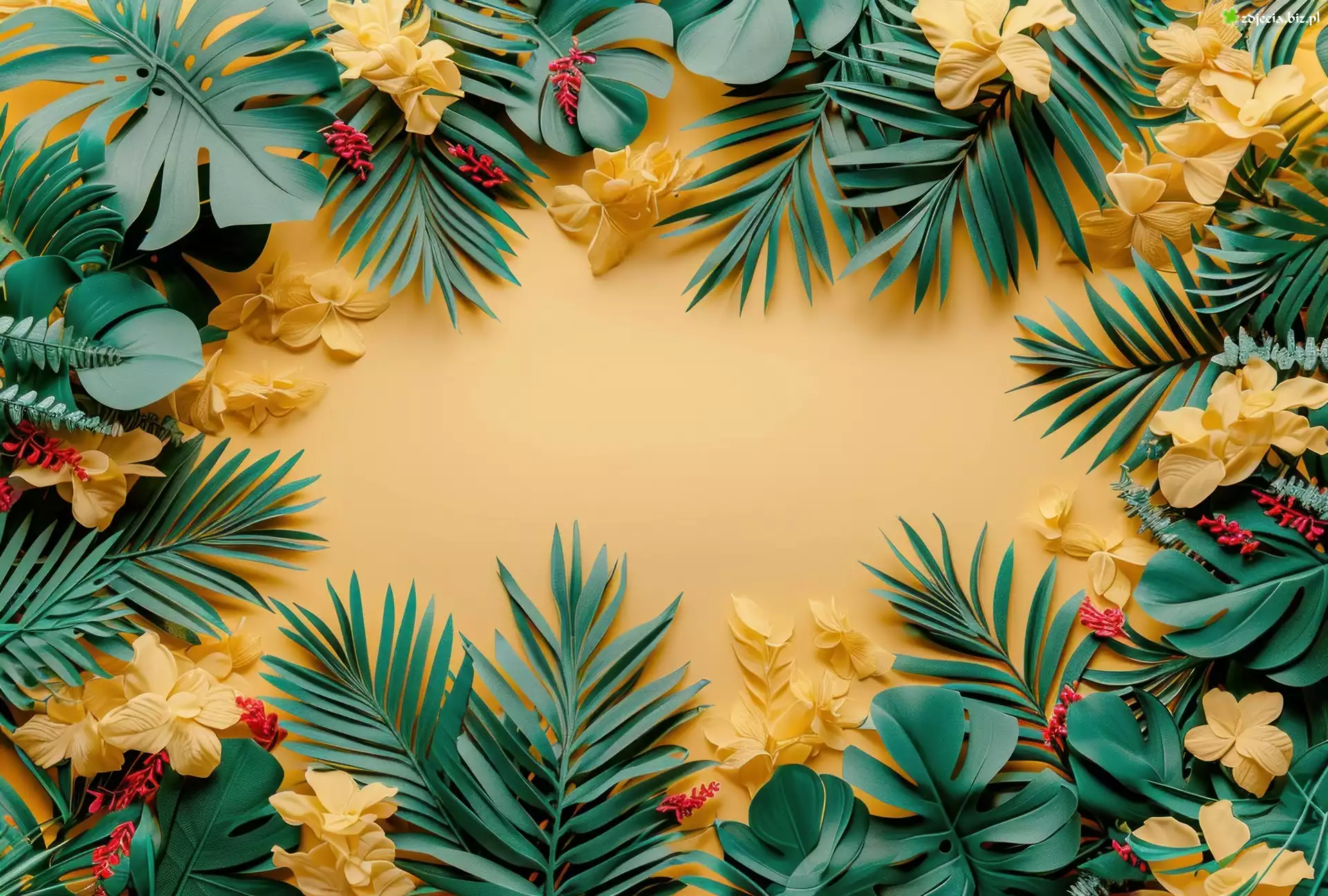 Zdjęcie Żółte, Kwiaty, Liście, Tło