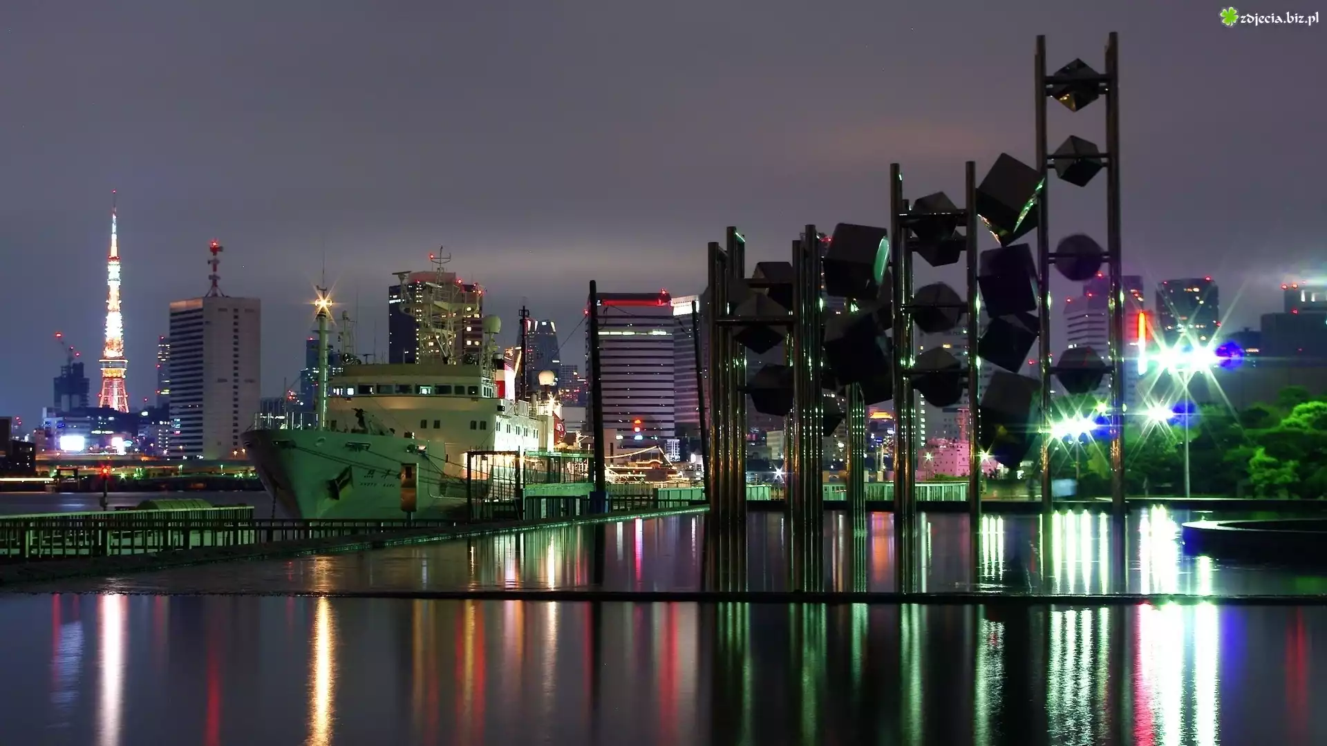 Zdjęcie Tokio, Miasto, Nocą, Statek