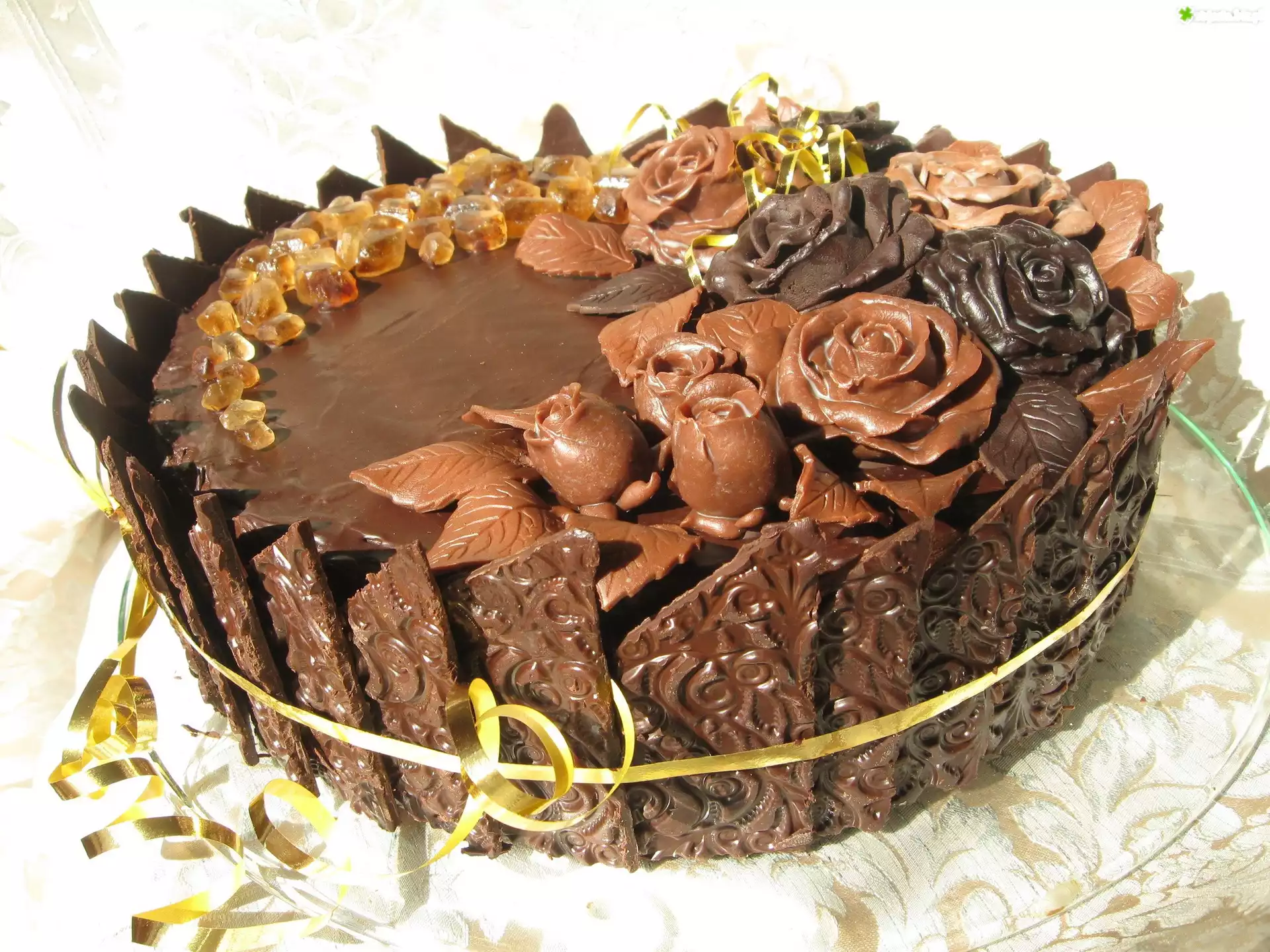Zdjęcie Tort, Czekoladowy, Czekoladowe, Ozdoby, Wstążka