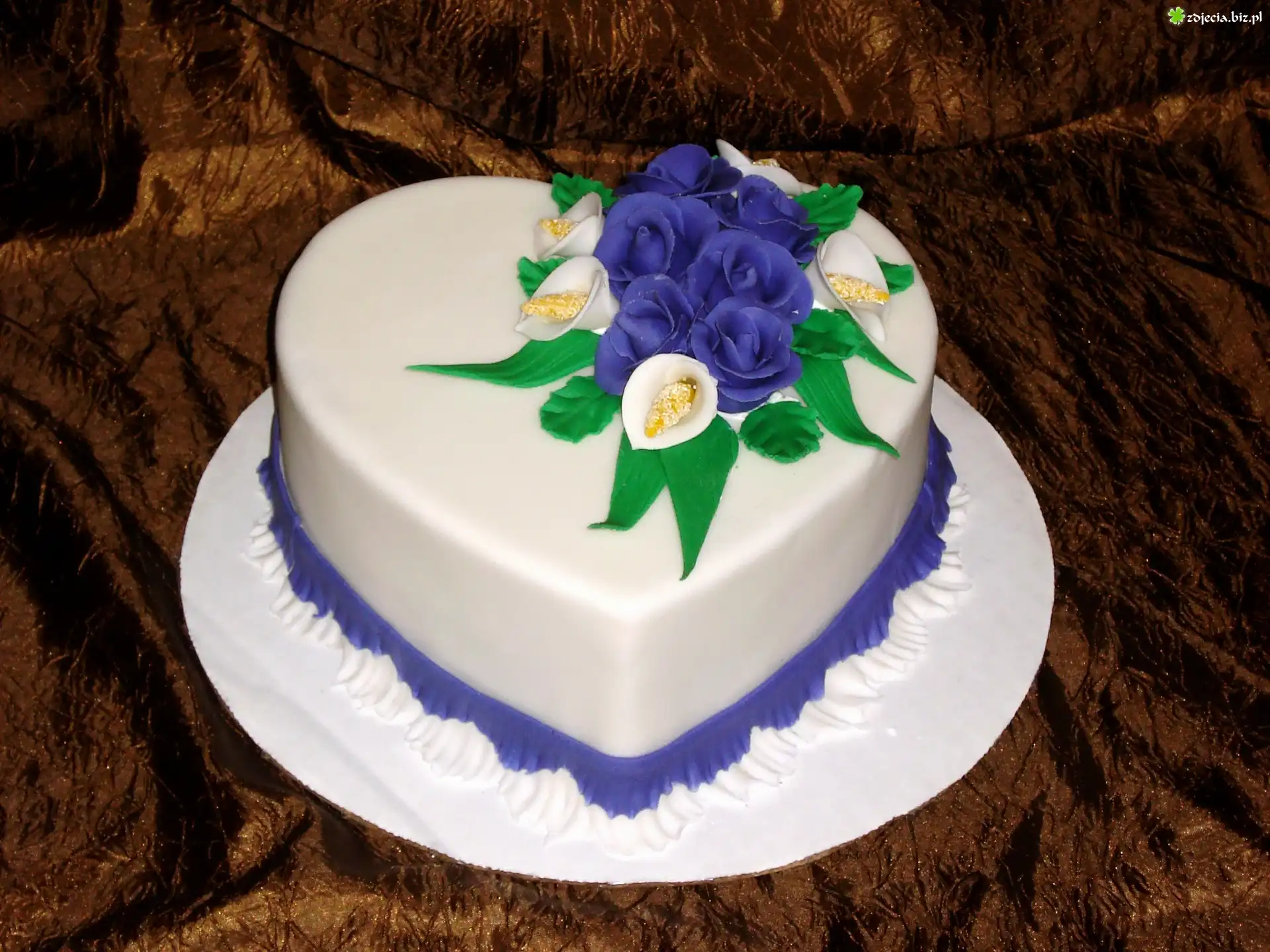 Zdjęcie Tort, W, Kształcie, Serca, Kwiaty