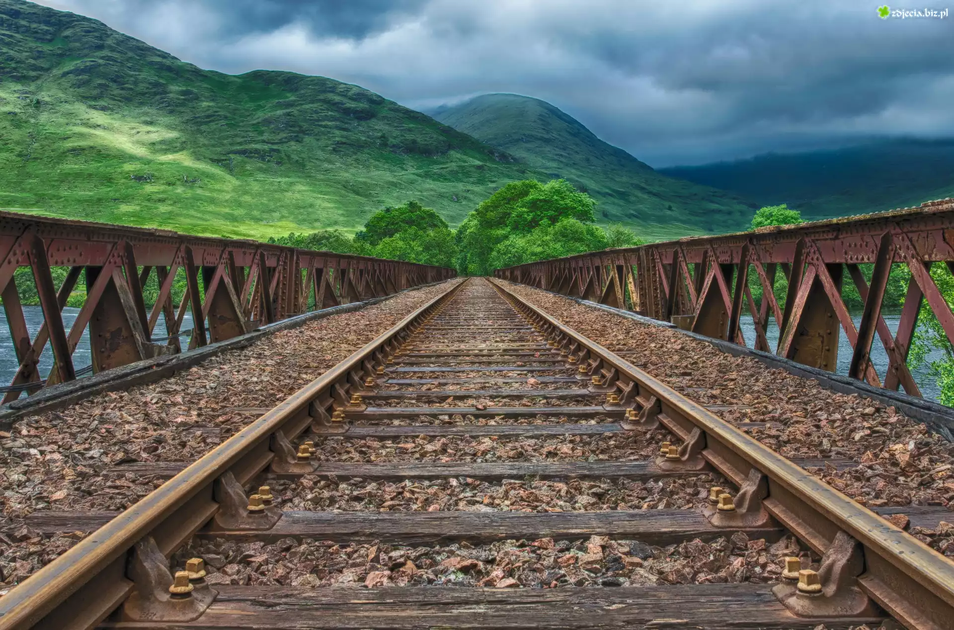 Zdjęcie, Tory kolejowe, Góry, Drzewa