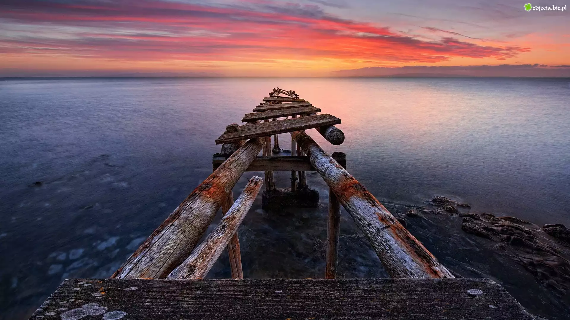 Zdjęcie, Włochy, Toskania, Zniszczone, Molo, Morze, Zachód Słońca