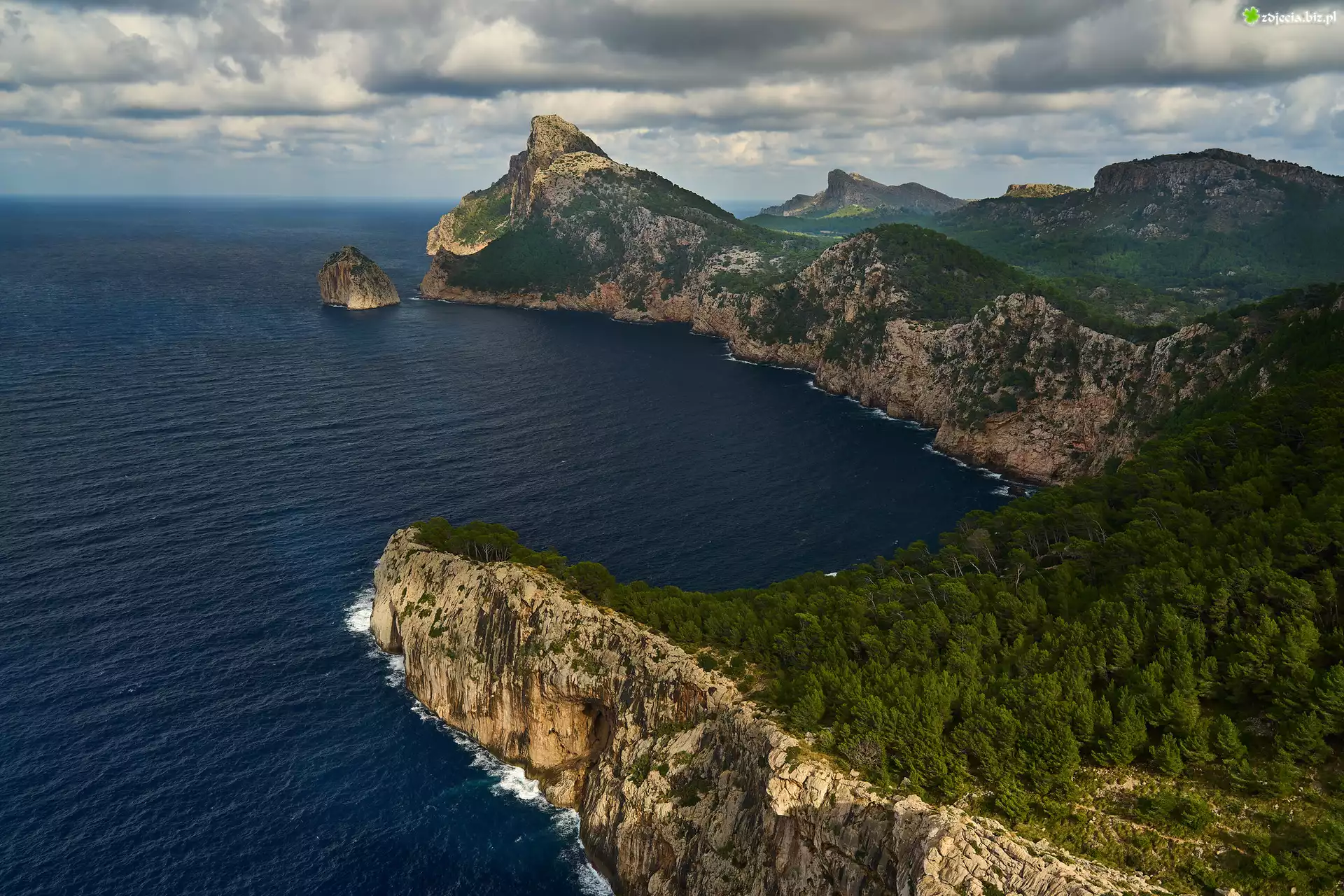 Zdjęcie Półwysep Formentor, Wybrzeże, Klif, Góry Serra de Tramuntana, Skała, Morze, Zachód słońca, Wyspa Majorka, Hiszpania |