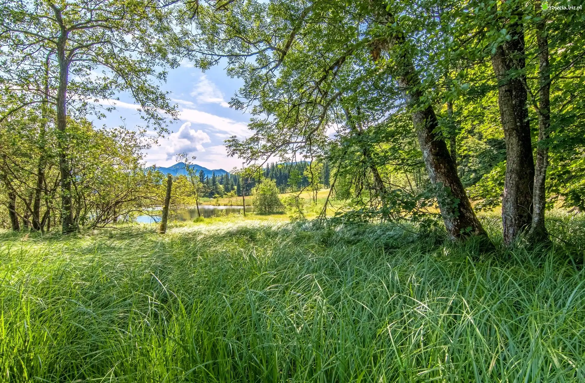 Zdjęcie Drzewa, Trawa, Jezioro
