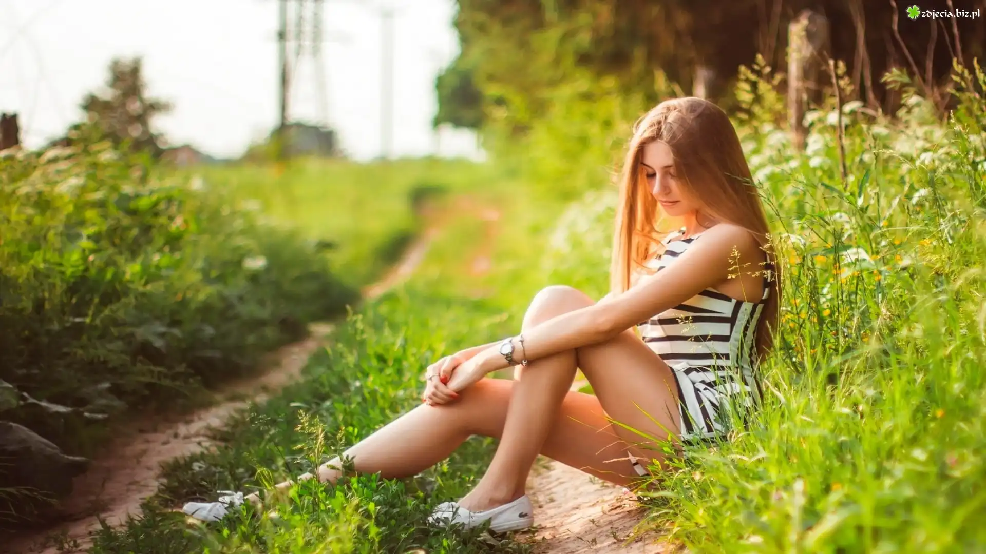 Zdjęcie Ładna, Dziewczyna, Łąka, Trawa, Lato