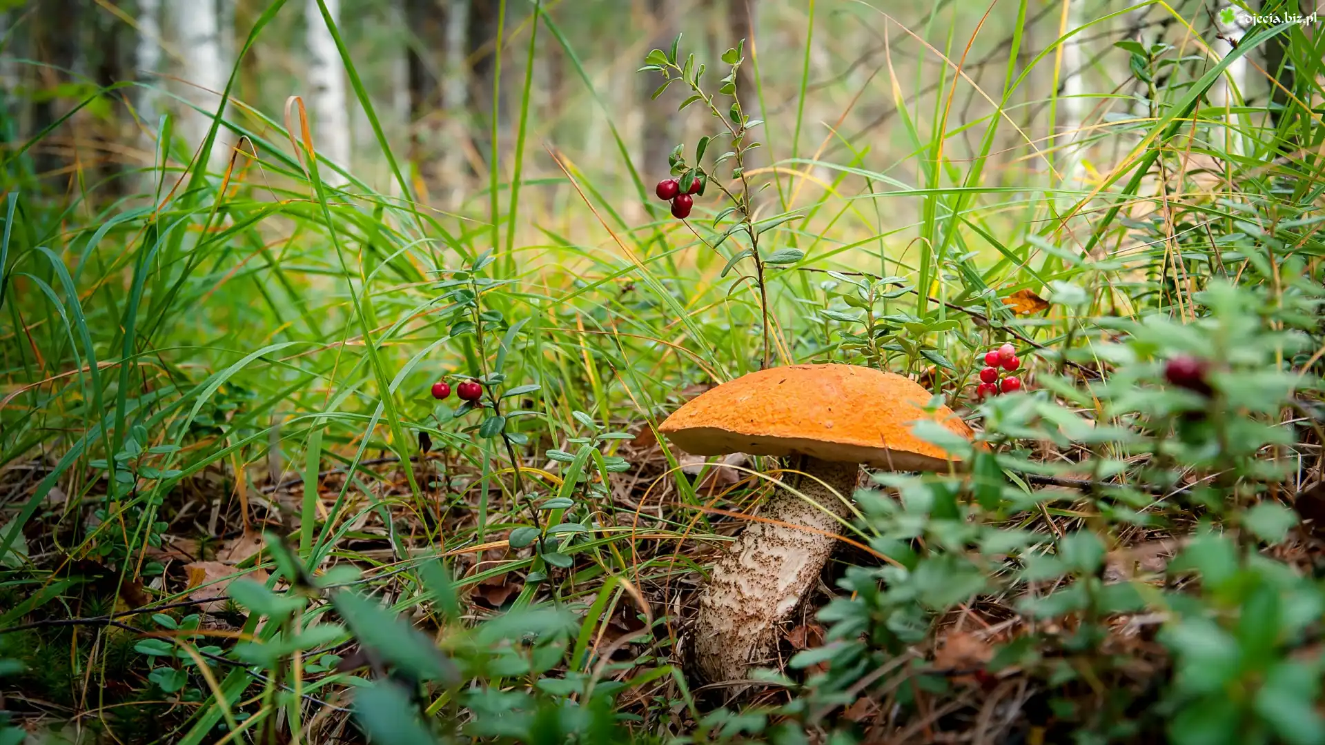 Zdjęcie Trawa, Jagody, Grzyb, Koźlarz czerwony