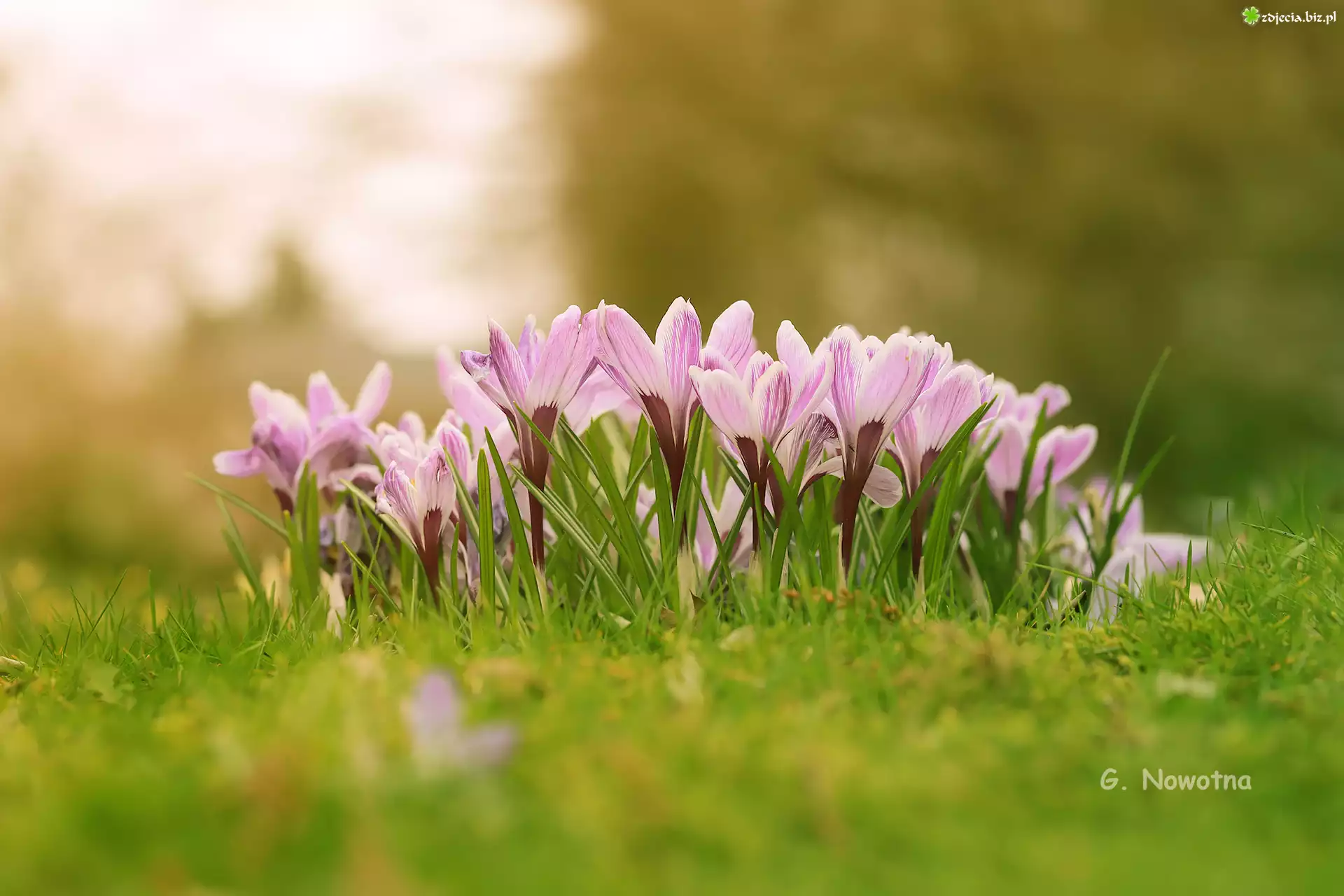 Zdjęcie Liliowe, Krokusy, Kwiaty, Trawa
